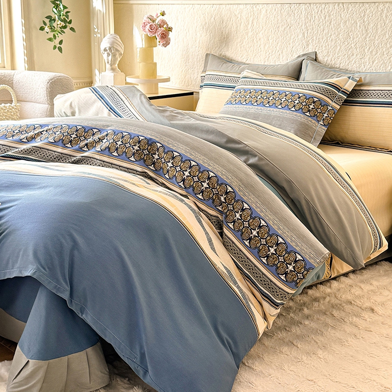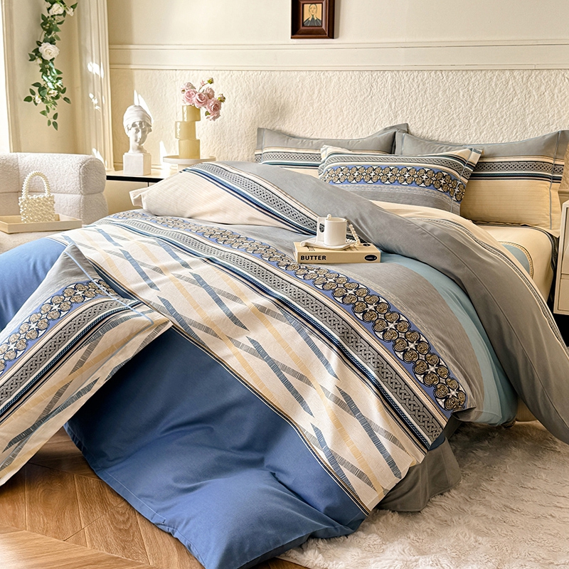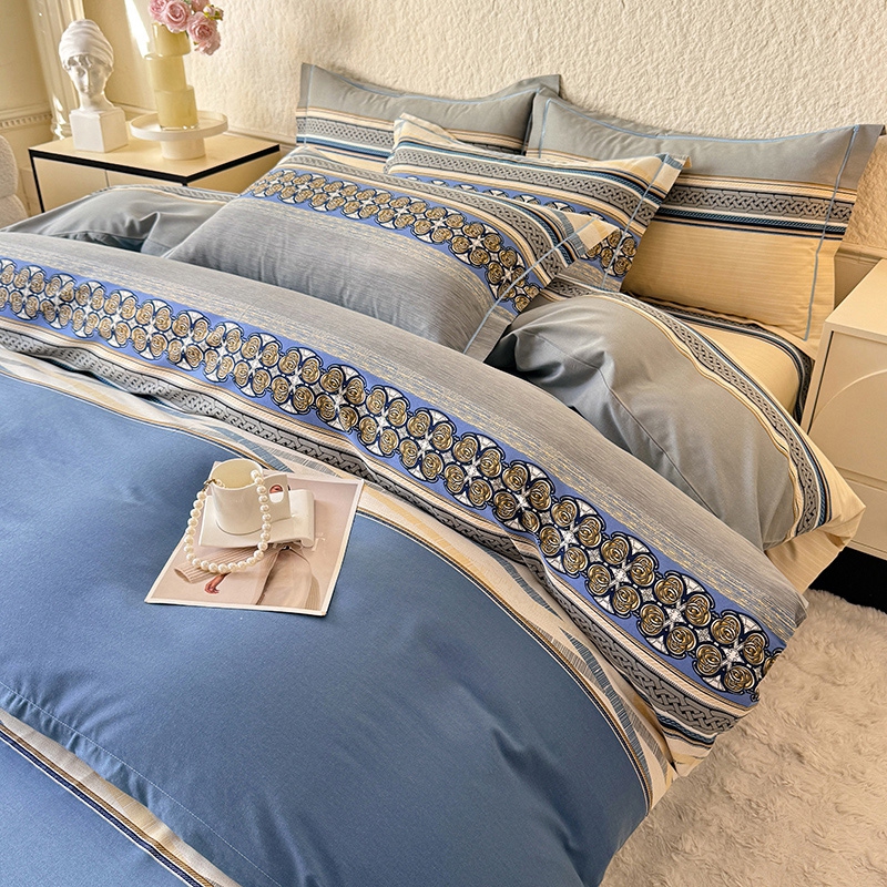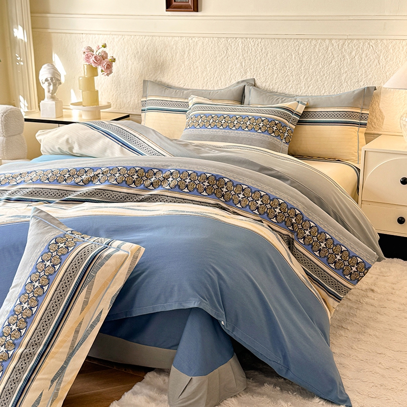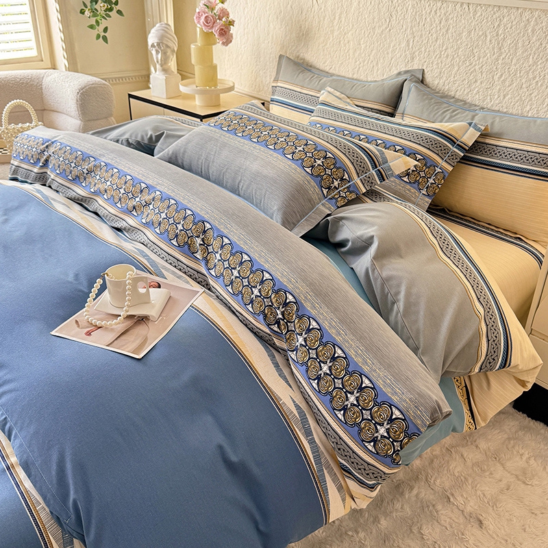 木易家居2026新款全棉磨毛印花四件套 奥斯丁 蓝