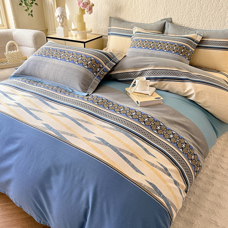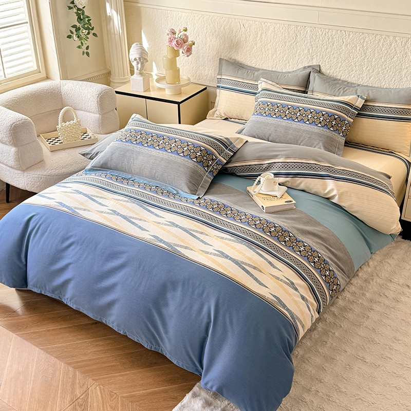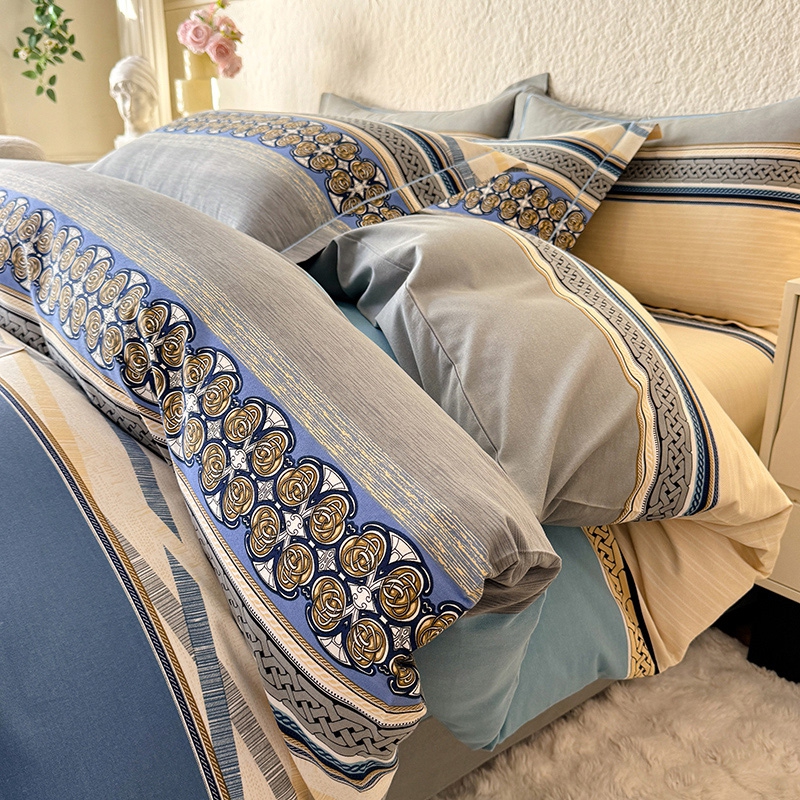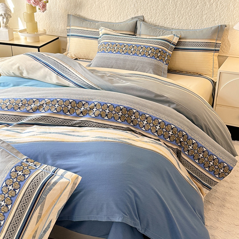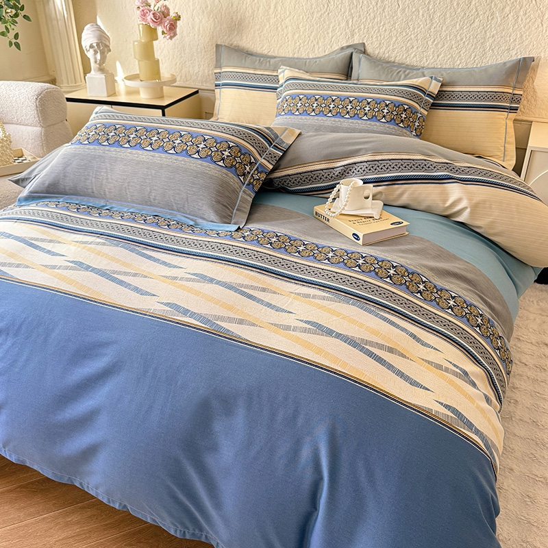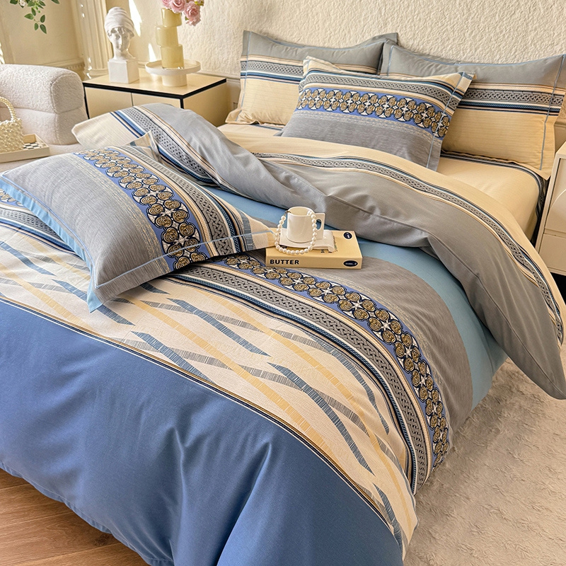 木易家居2026新款全棉磨毛印花四件套 奥斯丁 蓝