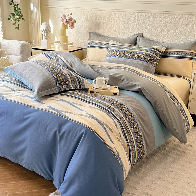 木易家居 2026新款全棉色织水洗棉四件套海伦-蓝,海伦-蓝