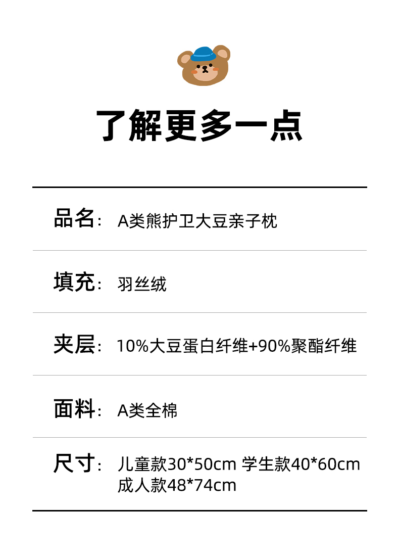当前位置: 91家纺网 > 商品网购 > 枕头/枕芯/保健枕/颈椎枕 > 枕头枕芯 > 织布人 2025新款枕芯A类全棉熊护卫大豆亲子枕儿童学生枕成人家用枕头 A类熊护卫全棉大豆枕-蓝色