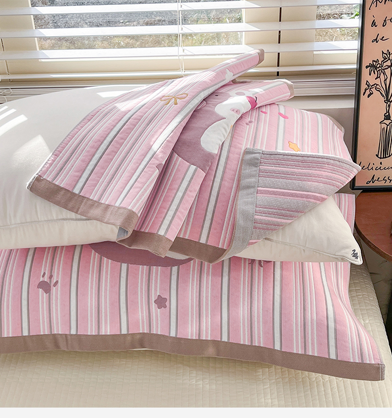 (总)美宜家 2026新款全棉细纱加厚萌系治愈风枕巾,条纹蘑菇一只,伙伴一只,萌萌兔一只,绅士熊一只,童趣一只,小暖狗一只,条纹蘑菇一对,伙伴一对,萌萌兔一对,绅士熊一对,童趣一对,小暖狗一对
