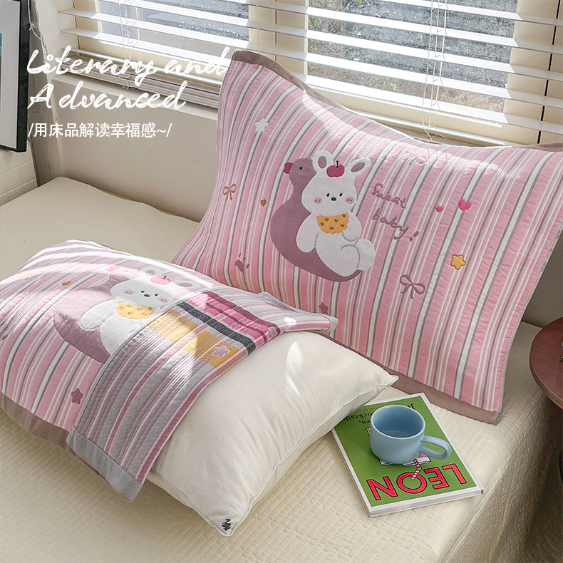 商品名称:美宜家 2026新款全棉细纱加厚萌系治愈风枕巾 萌萌兔一对