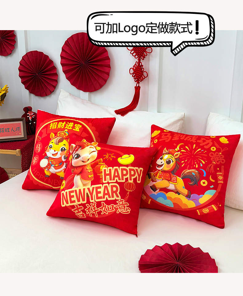 万聚凯枕芯 2025新款马年春节抱枕 吉祥如意