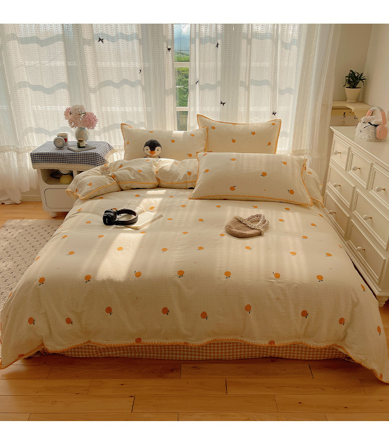 (总)瑞莱 2026新款A类全棉纯棉有氧双层纱四件套,白熊小姐,彩色木马,淡彩花笺,费尔岛小熊,焦糖奶汪-桔,焦糖奶汪-绿,萌星,苹果星星人,小樱桃,樱桃画报