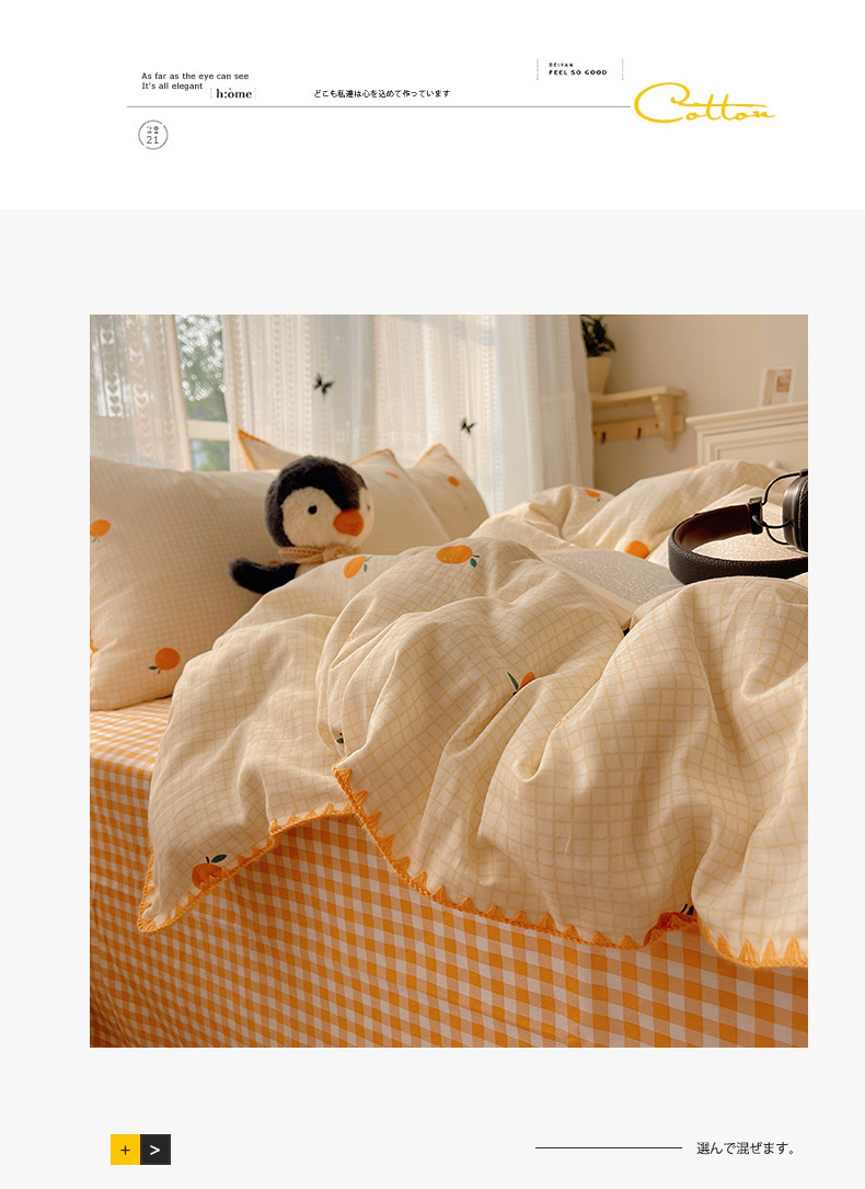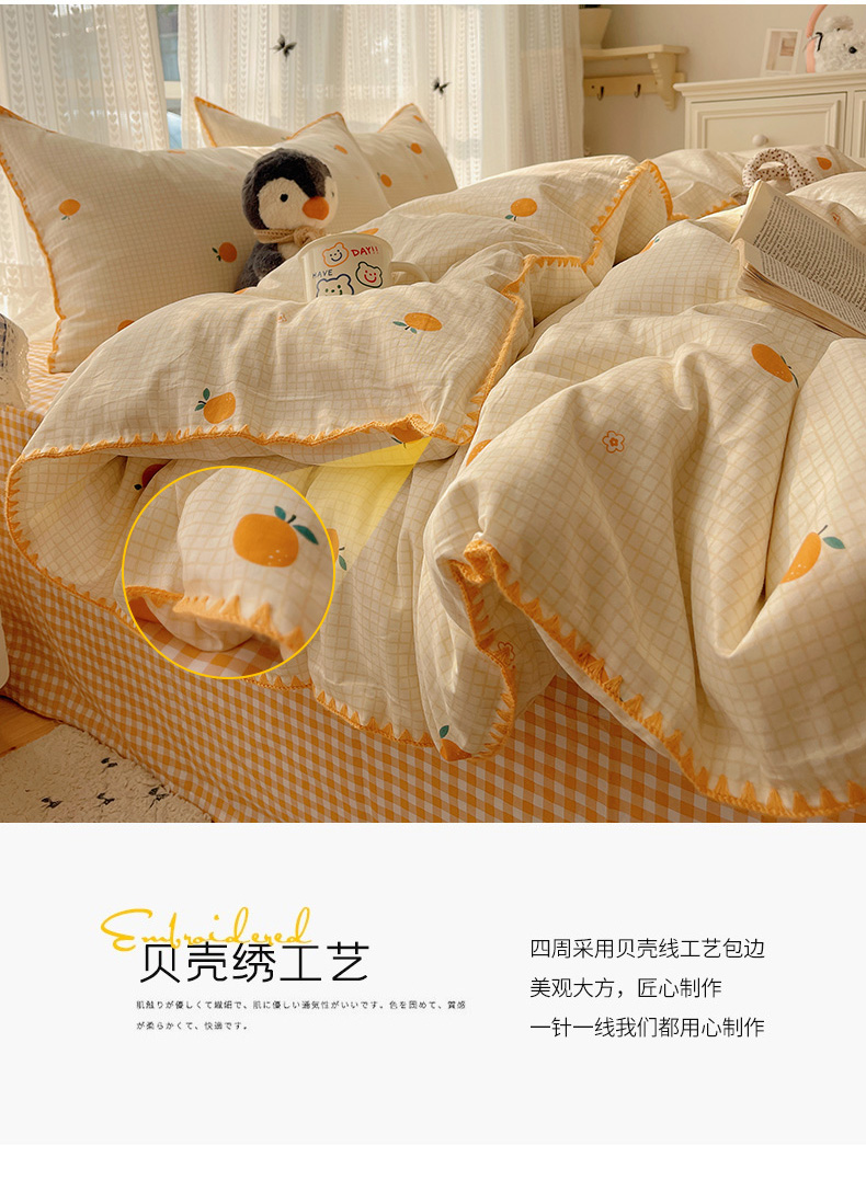 商品名称:瑞莱 2026新款全棉印花贝壳边四件套 甜桔