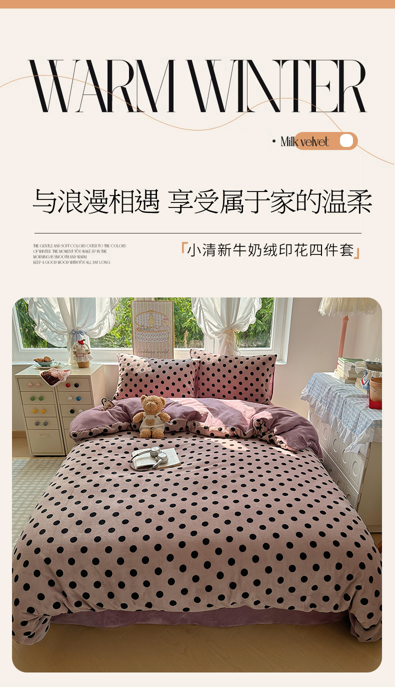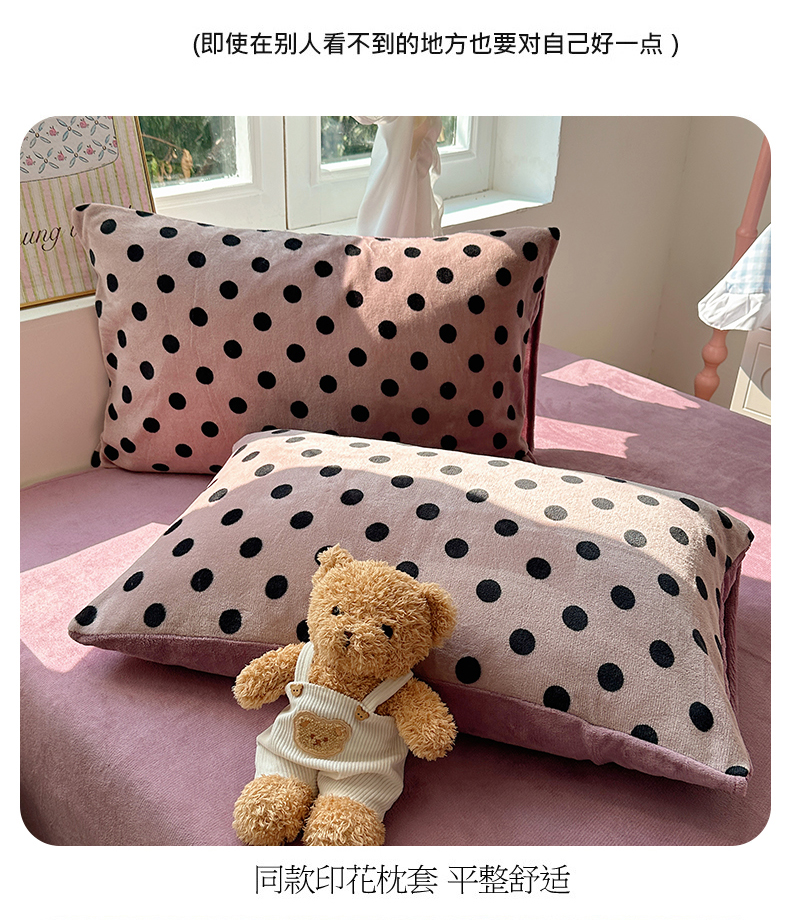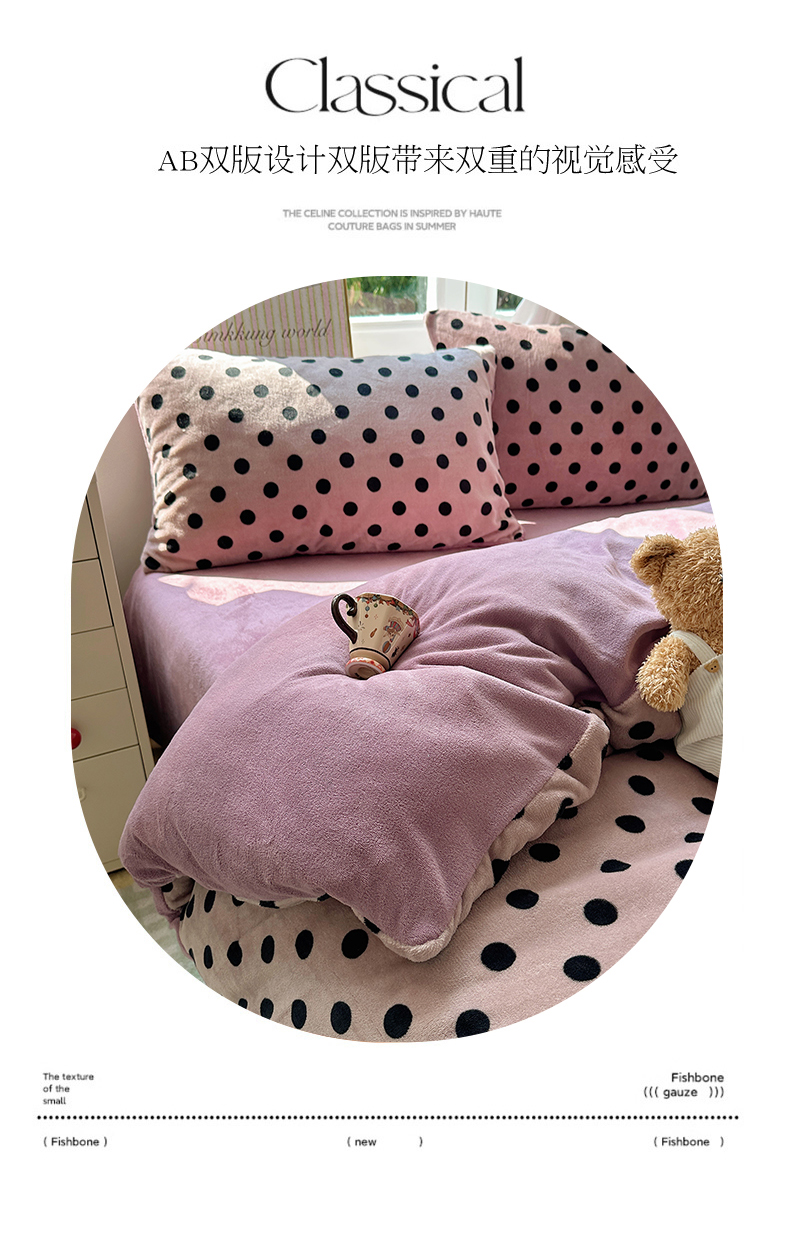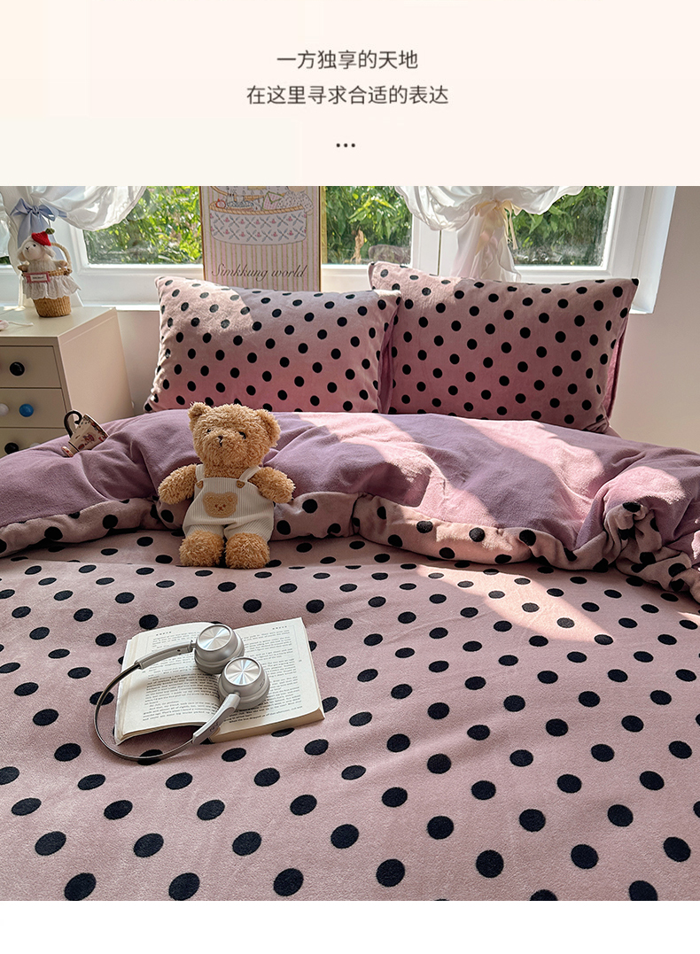 当前位置: 91家纺网 > 商品网购 > 床品套件 > 四件套 > 牛奶绒四件套 > 优选 2025新款小清新加厚高克重牛奶绒四件套直播热款新花型更新 波利圆点-紫