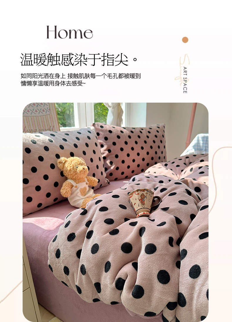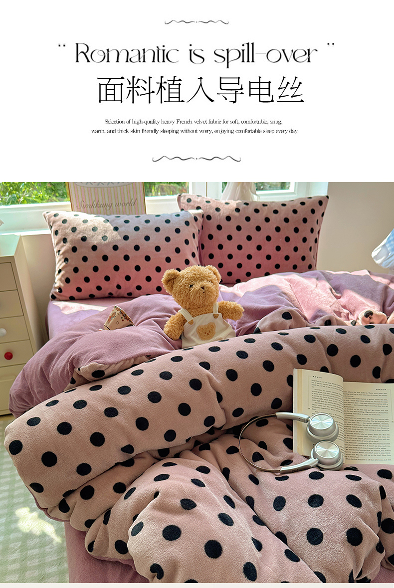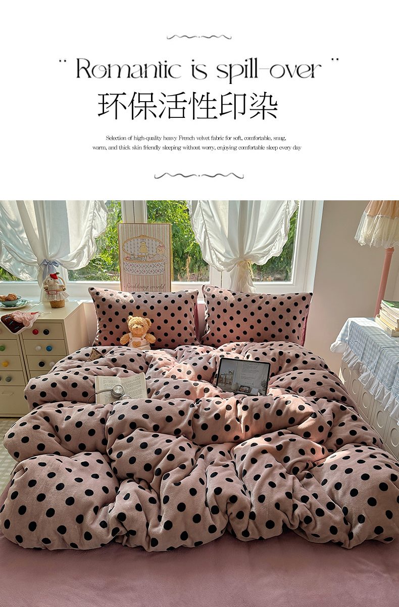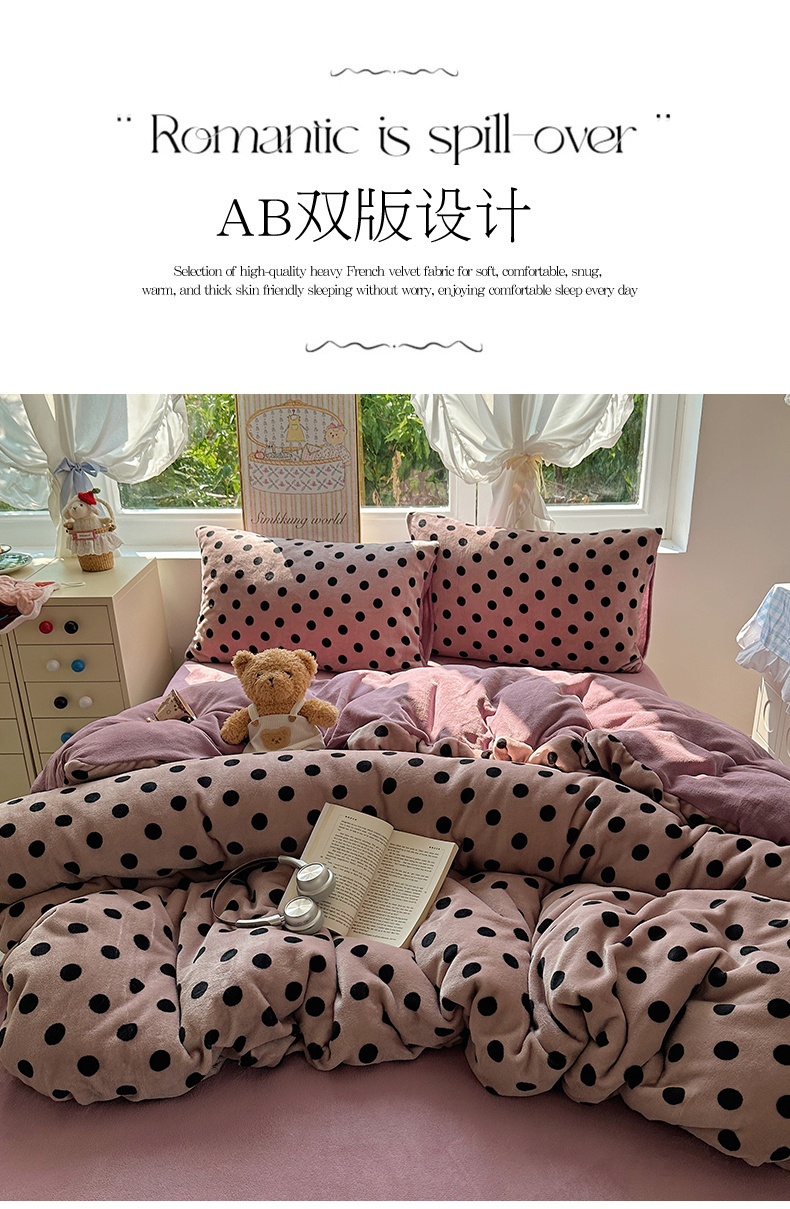当前位置: 91家纺网 > 商品网购 > 床品套件 > 四件套 > 牛奶绒四件套 > 优选 2025新款小清新加厚高克重牛奶绒四件套直播热款新花型更新 波利圆点-紫