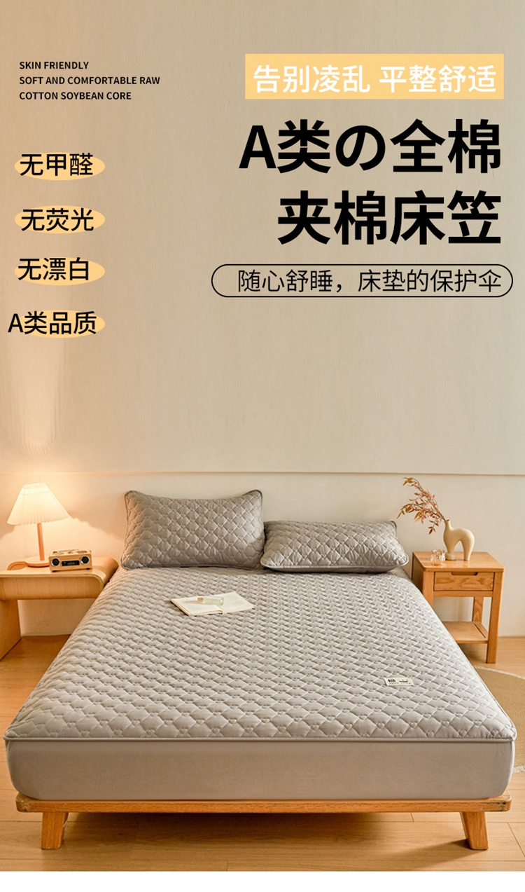 (总)卡诗兰 2025新款磨毛夹棉床笠,格白灰,格灰橙,格小黄,格中粉,格中灰,格中蓝,云中灰,云中蓝