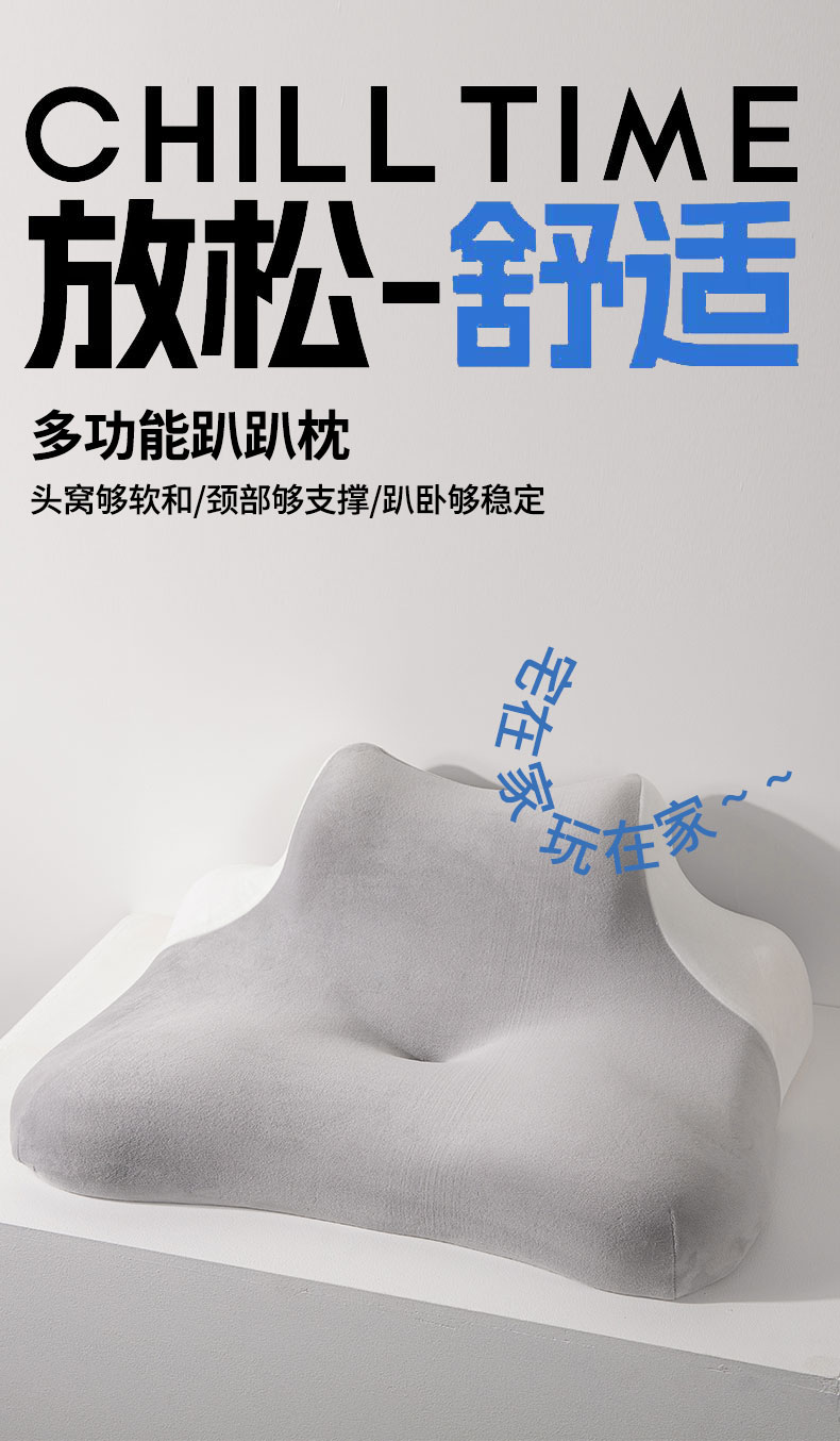 (总)其乐枕芯 2025新款多功能慢回弹牛奶绒趴睡枕趴趴枕记忆棉枕头,天空蓝拼白色,魅惑紫拼白色,青草绿拼白色,清新绿拼白色,深灰色拼白色
