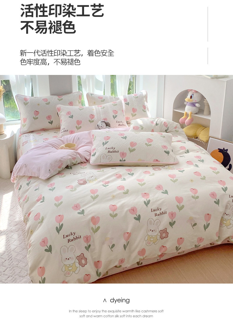 商品名称:羽爱家纺 2025新款A类全棉印花水洗床盖四件套系列 萌萌兔