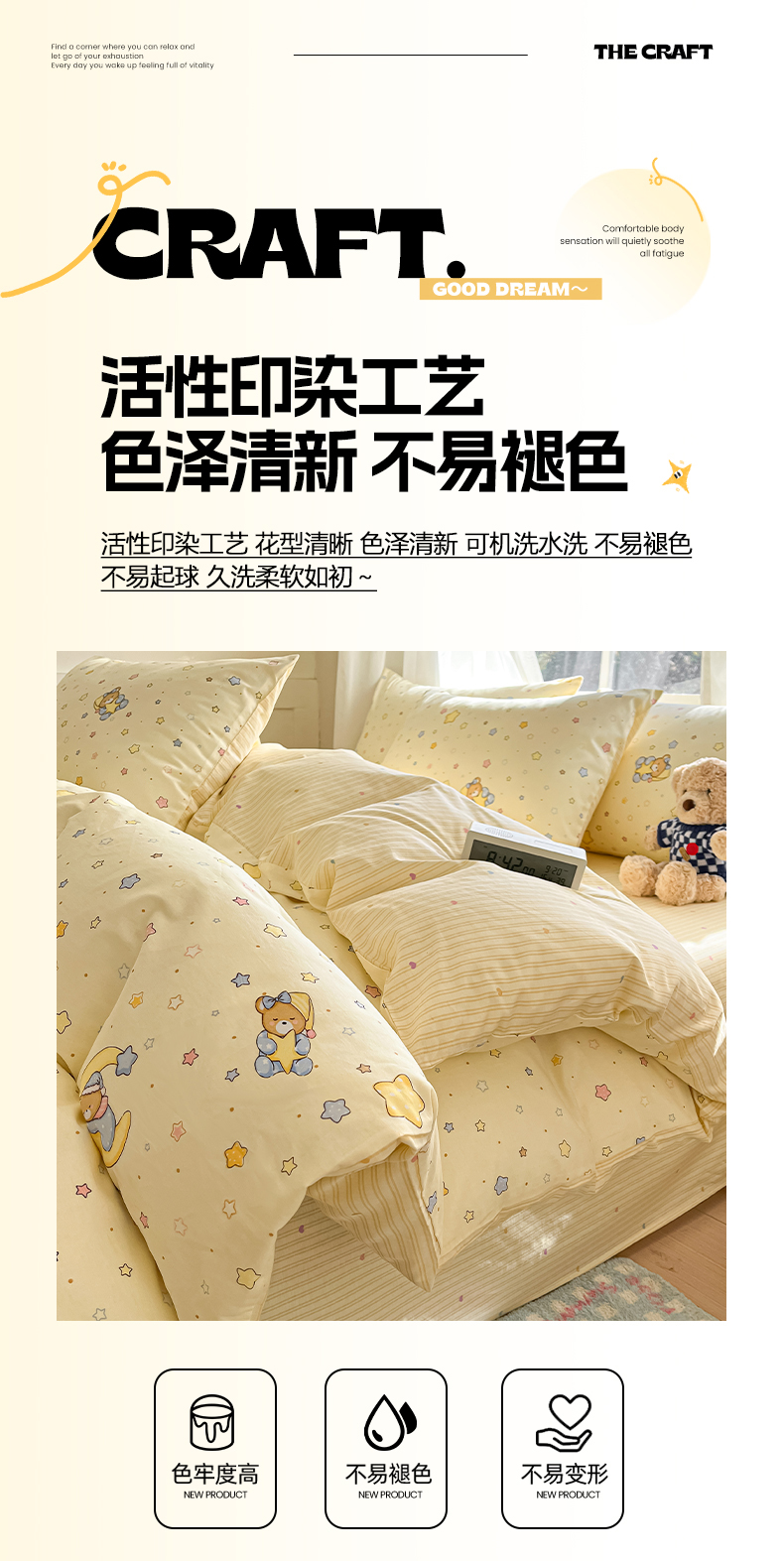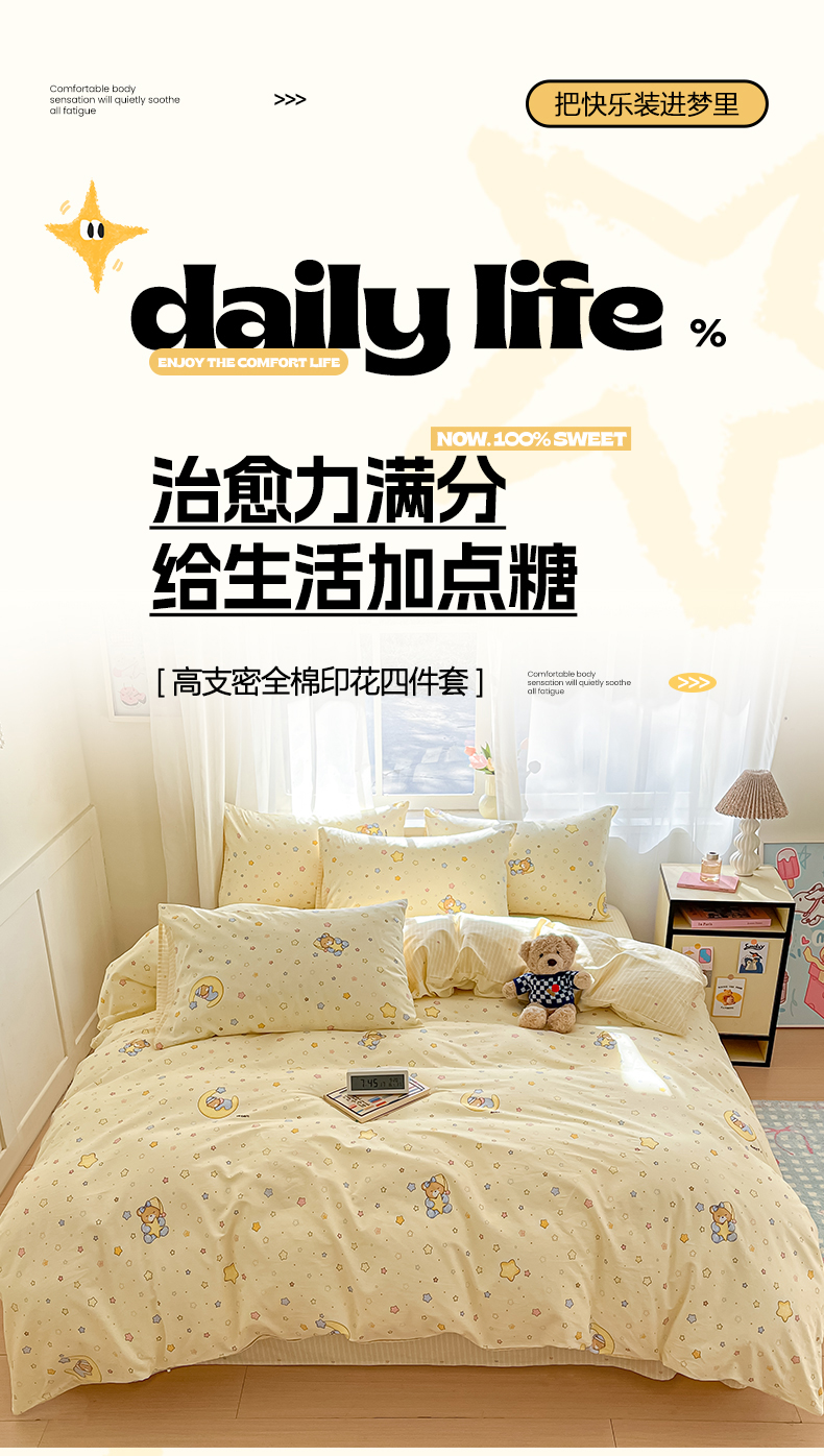 商品名称:吉象家纺 2026新款高支密全棉印花四件套 睡梦熊