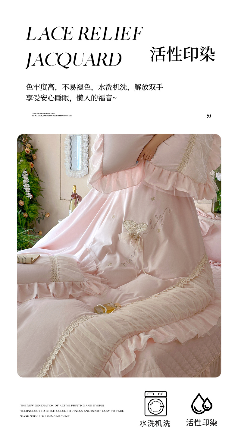 当前位置: 91家纺网 > 商品网购 > 床品套件 > 四件套 > 全棉普通四件套 > 乐朵家居 2026新款 蝴蝶仙子 全棉磨毛床单款床盖款四件套(控价 床单款298 床盖款358) 浅粉玉