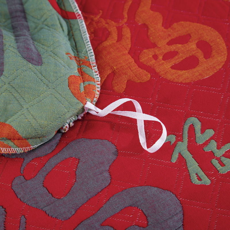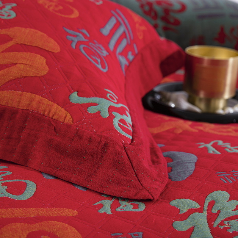 (总)仰望棉麻双层纱供应链 2026新款镂空飞边款全棉色织提花四件套-鸳鸯锦,鸳鸯锦-正红