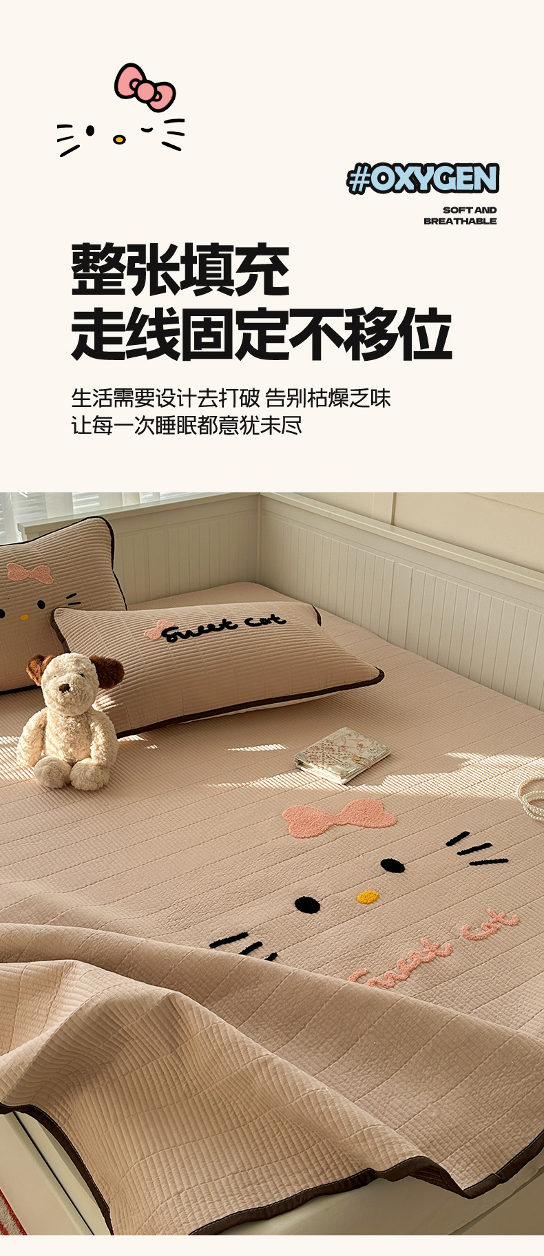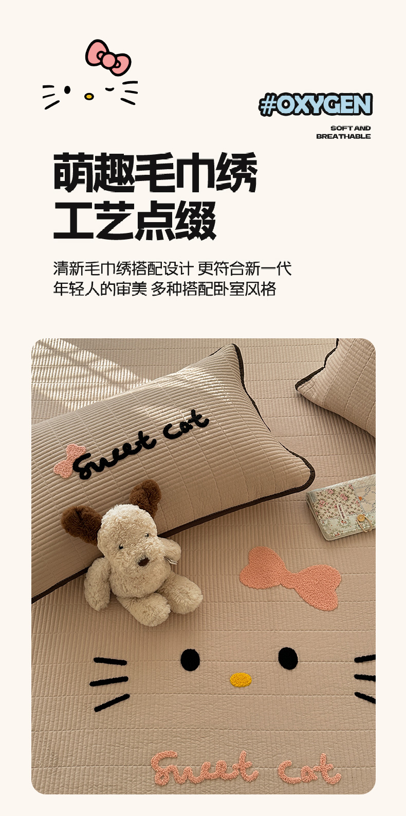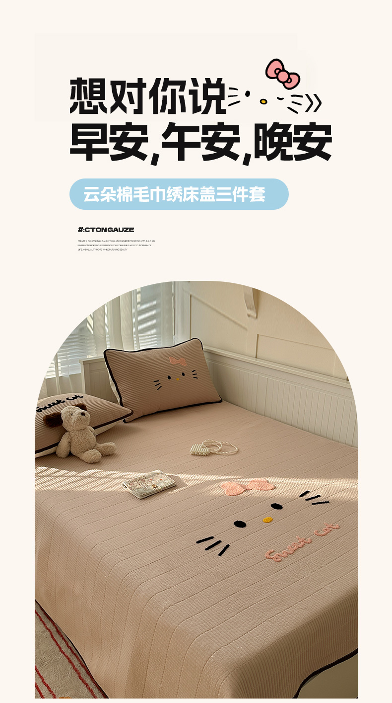 繁花家居 2025新款云朵棉软到心坎可爱毛巾绣床盖,不跑床的加厚床单 喵喵-奶杏