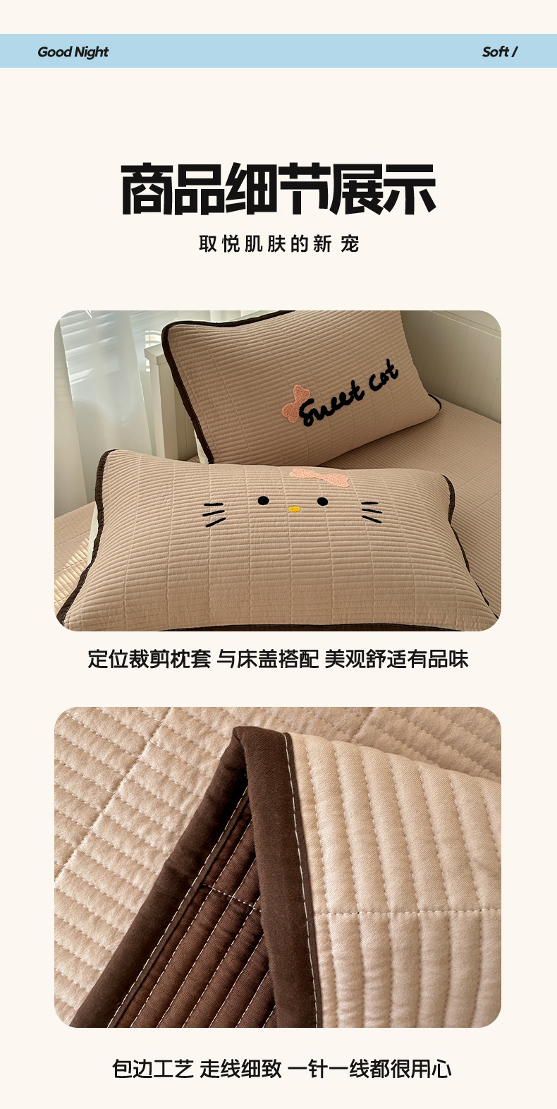 商品名称:繁花家居 2025新款云朵棉软到心坎可爱毛巾绣床盖,不跑床的加厚床单 喵喵-奶杏
