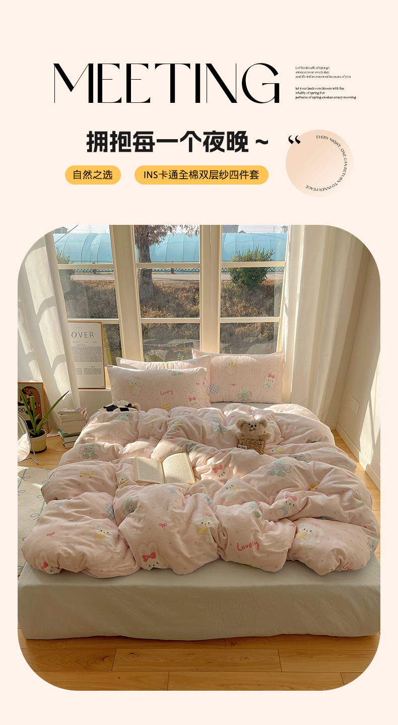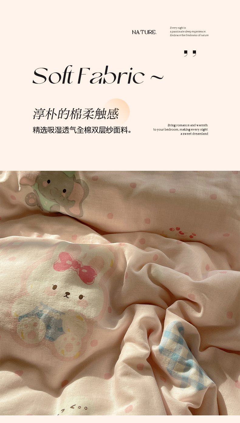 当前位置: 91家纺网 > 商品网购 > 床品套件 > 四件套 > 全棉普通四件套 > 六巷胡同 2026春夏新款INS卡通A类全棉纯棉双层纱四件套 双层纱-动物园日记