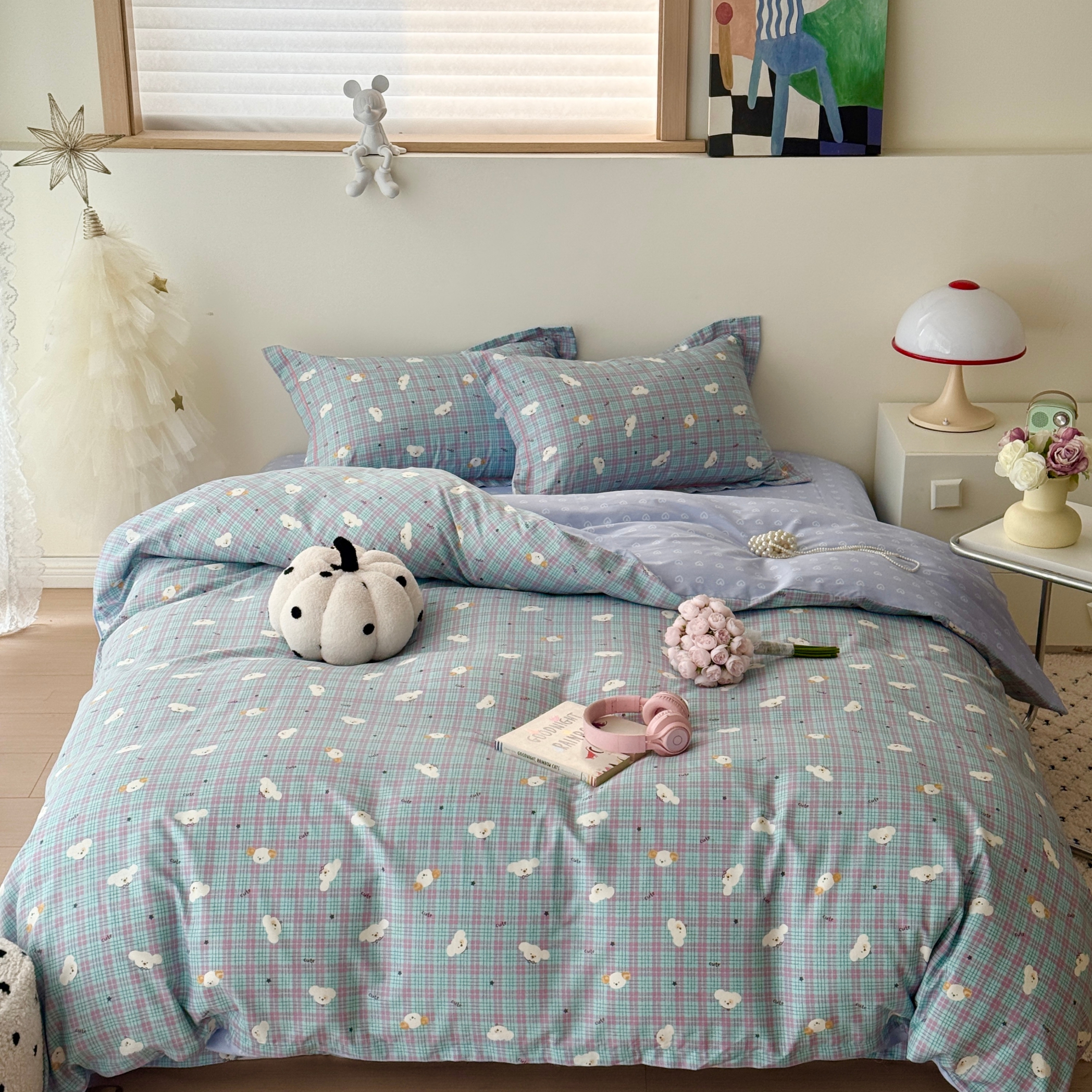 (总)于果 2025新款全棉13070四件套(11),竹林熊猫,彩虹兔,汪星卧室,熊熊漫歌,茸耳兔兔,小橘子,星星童话,心愿,理想几何,狂野听风,兰影-蓝,兰影-米,曼朵-咖,飘羽-粉,又见江南