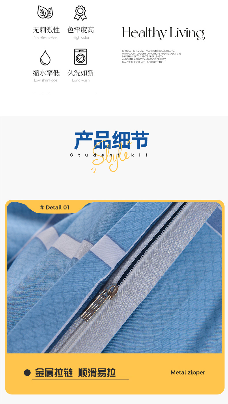 商品名称:小雨家纺 2026新款13372宿舍纯棉40支印花三件套 幕舒格-灰