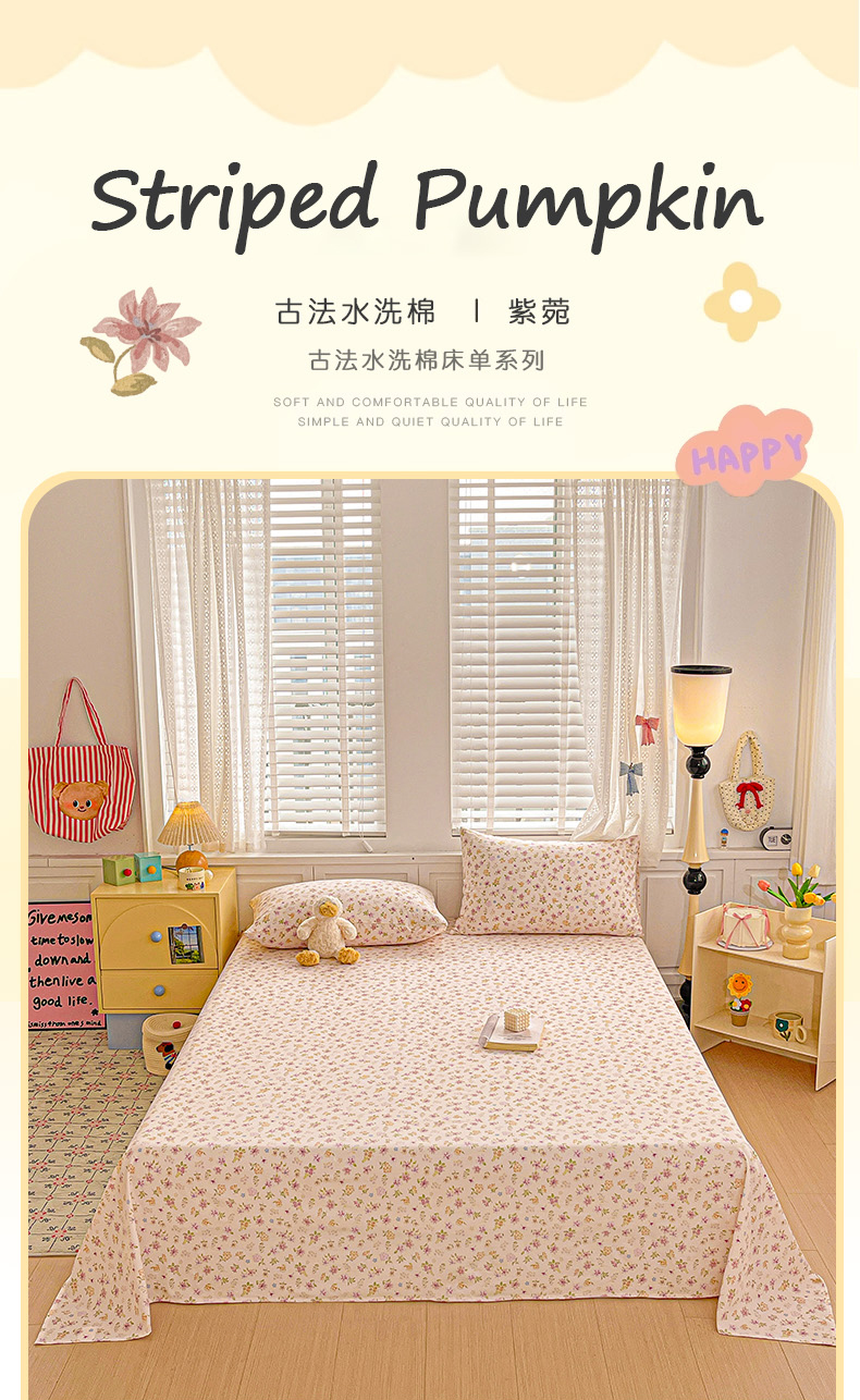 (总)温眠家纺 2026新款古法水洗棉加厚高克重双层纱单床单床单单件单品床单,紫菀,彩波波,蛋糕小猫,扶桑花未落,花韵,绮梦花间,素影,条纹南瓜,挽星入梦,汪星人,星星人,樱之桃桃,云间花述,织梦