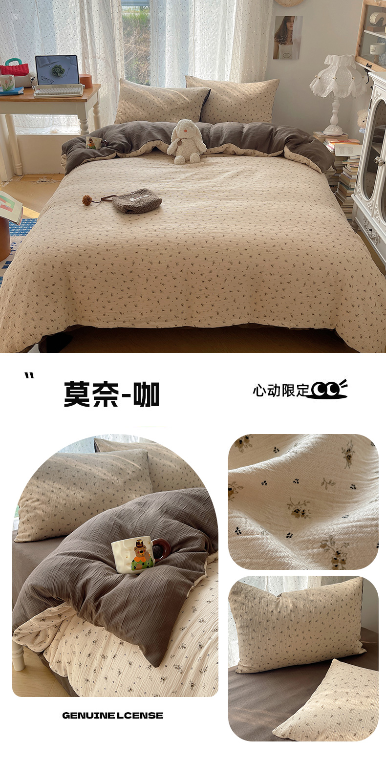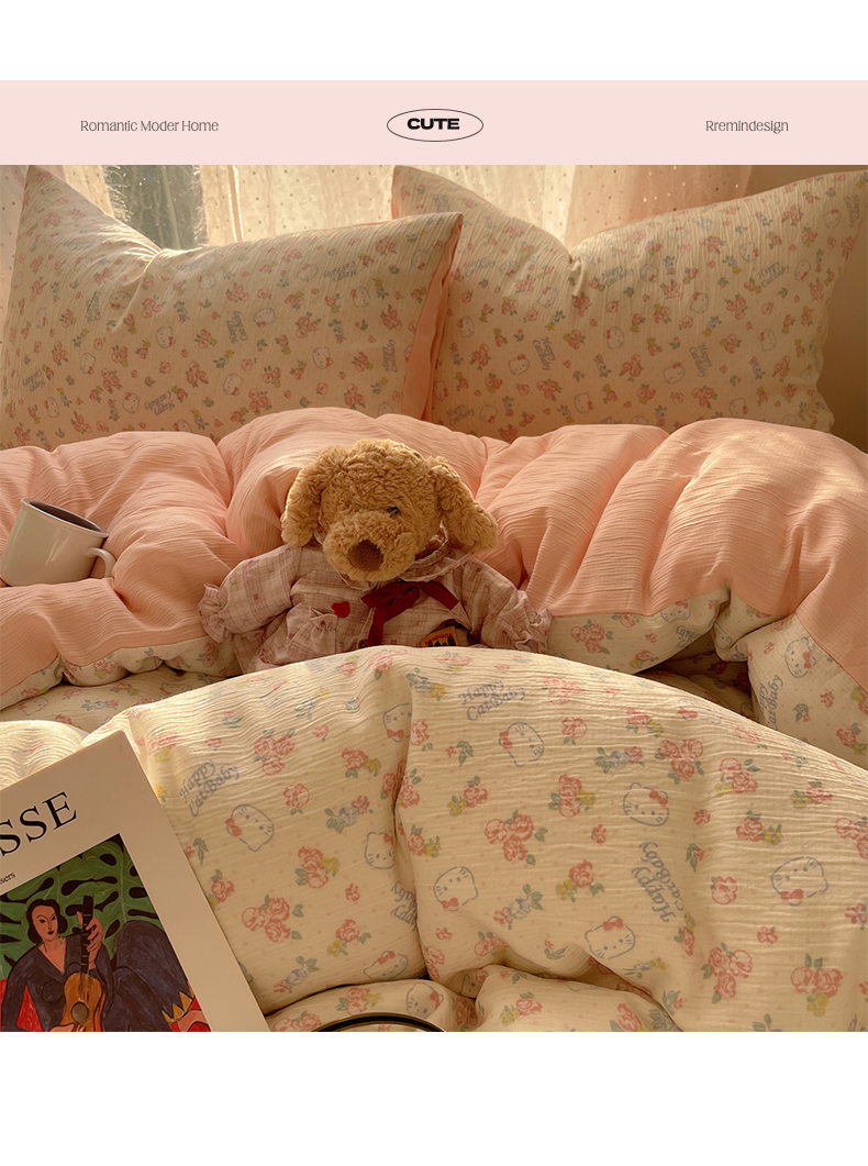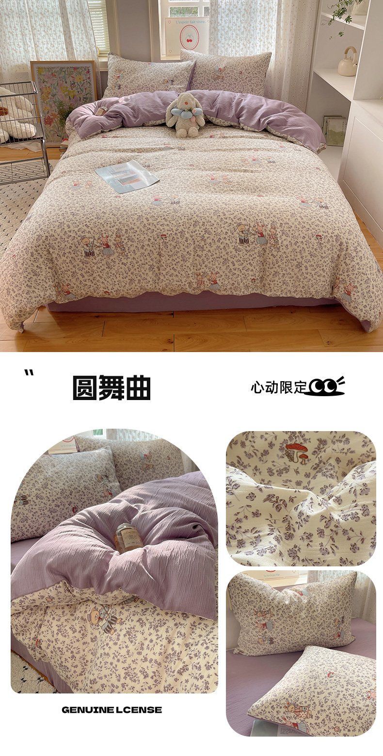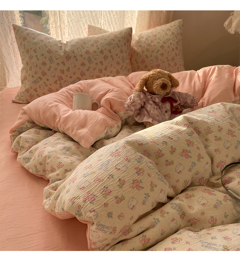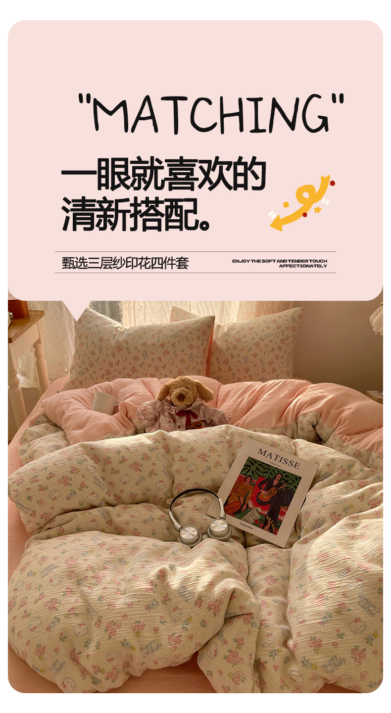 当前位置: 91家纺网 > 商品网购 > 床品套件 > 四件套 > 双层纱四件套 > 温眠家纺 2026新款亲肤舒适甄选三层纱印花套件系列四件套 花丛点点猫