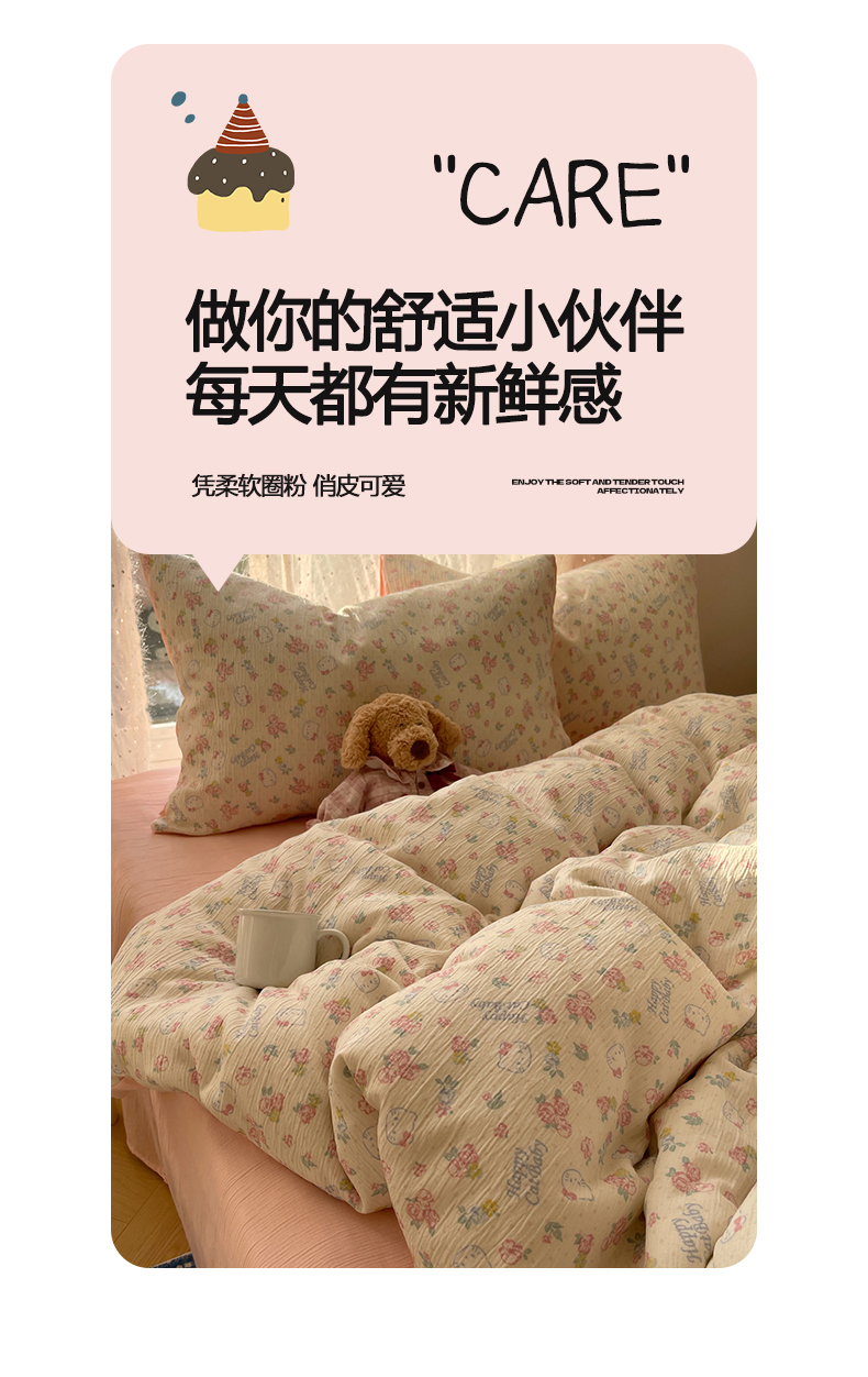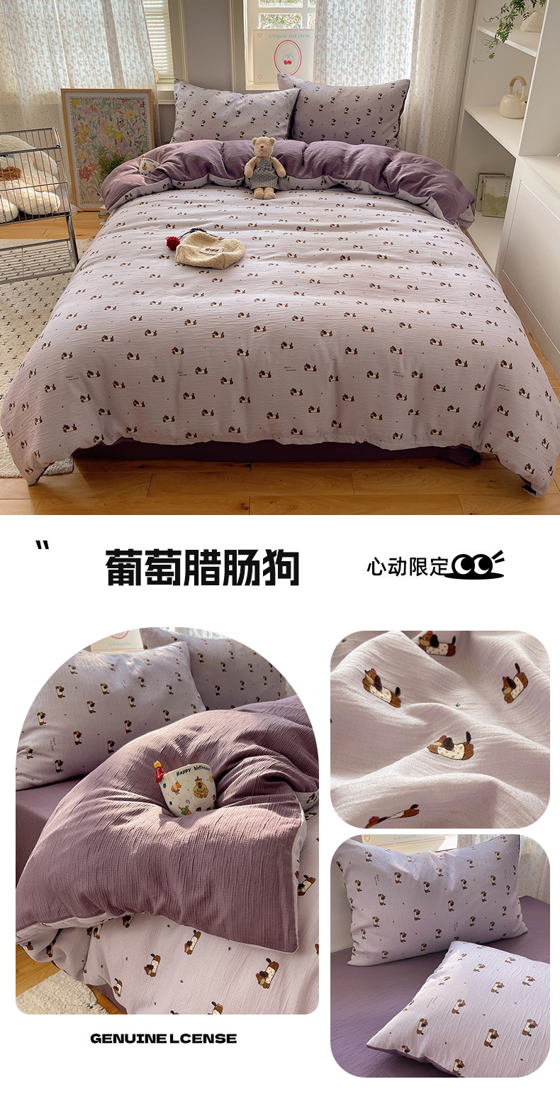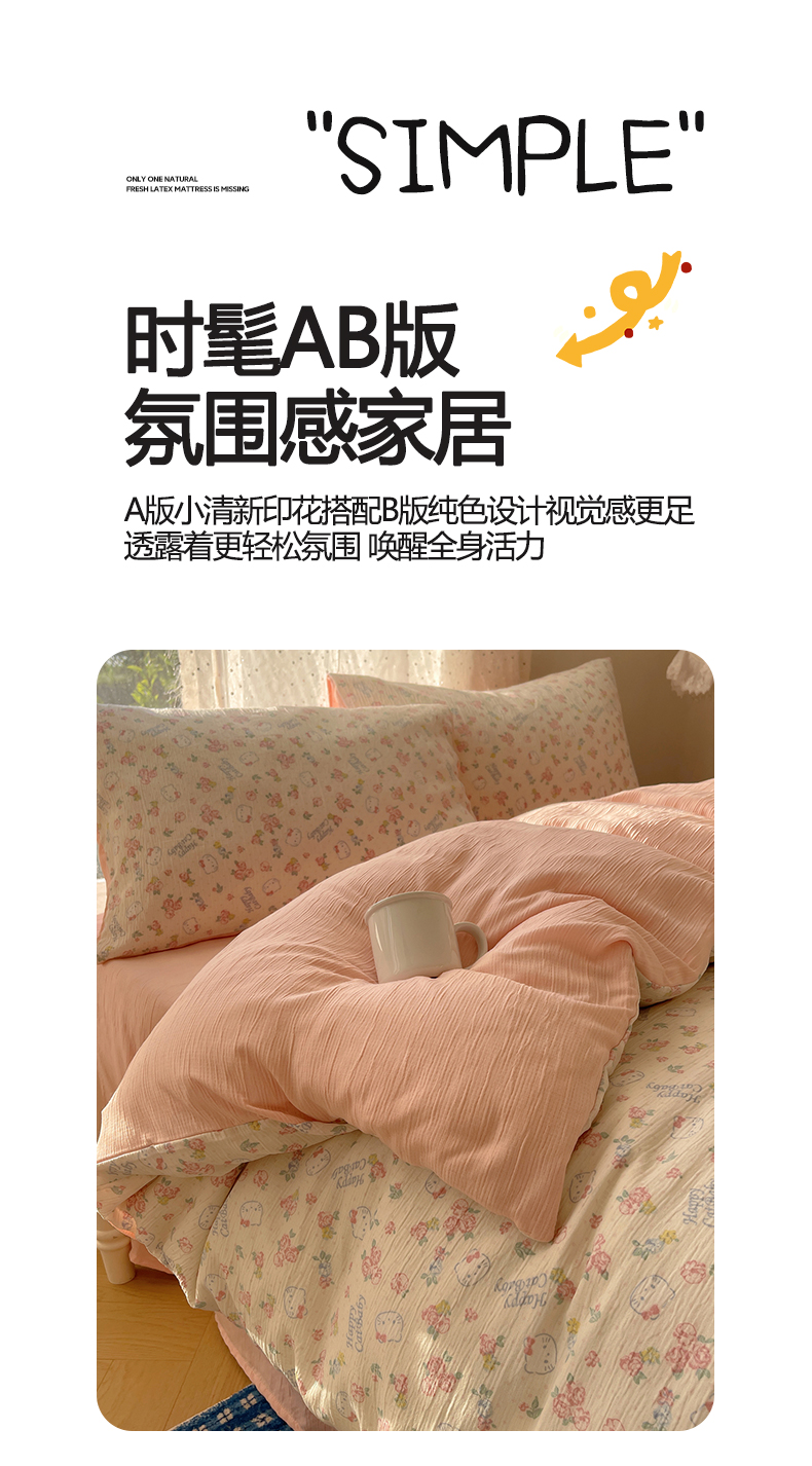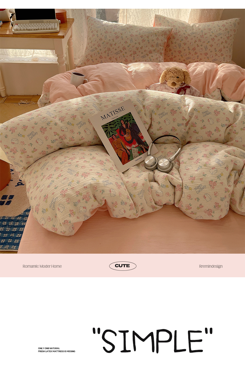 当前位置: 91家纺网 > 商品网购 > 床品套件 > 四件套 > 双层纱四件套 > 温眠家纺 2026新款亲肤舒适甄选三层纱印花套件系列四件套 花丛点点猫