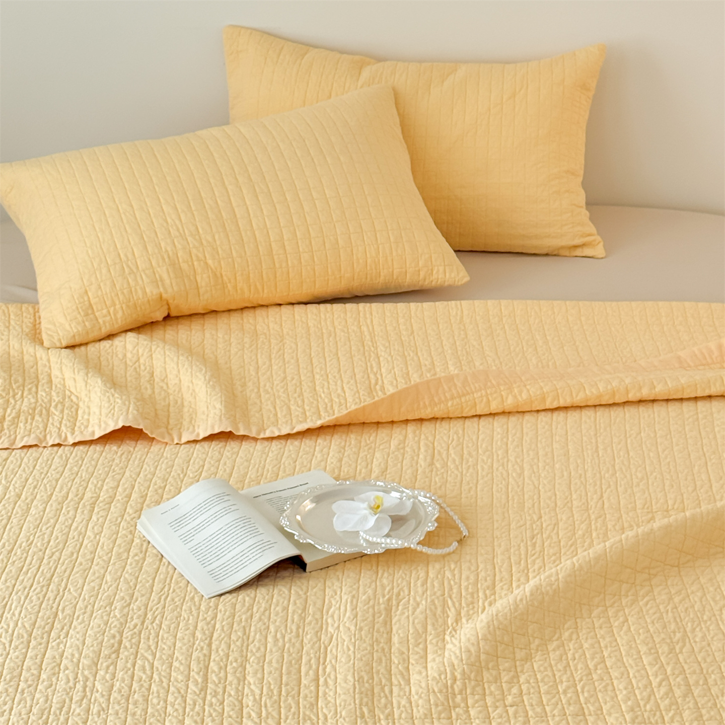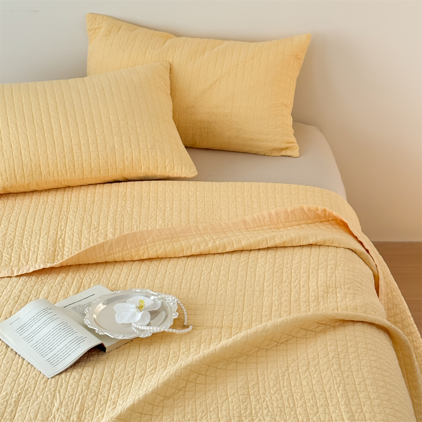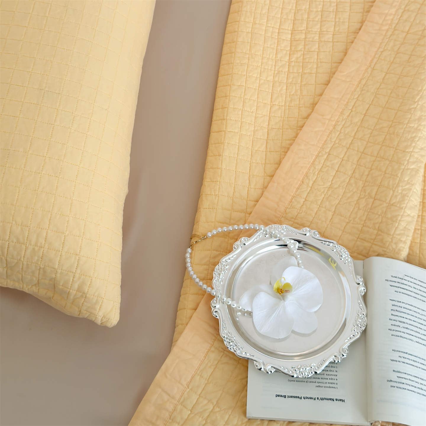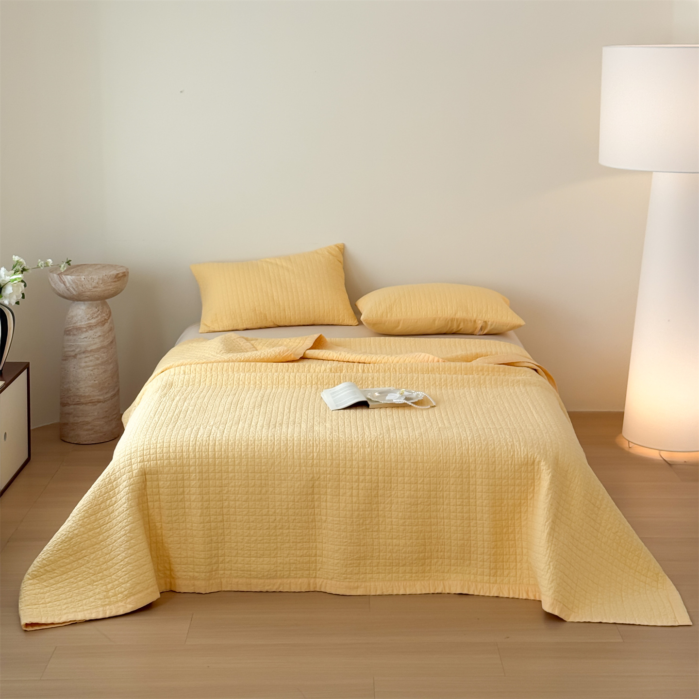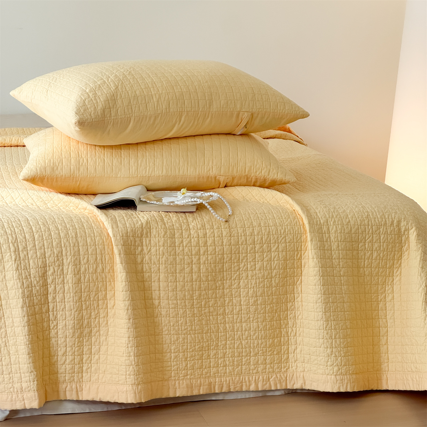 床盖工厂店 2026新款双面全棉填充棉花面包格床盖三件套 面包格-米黄