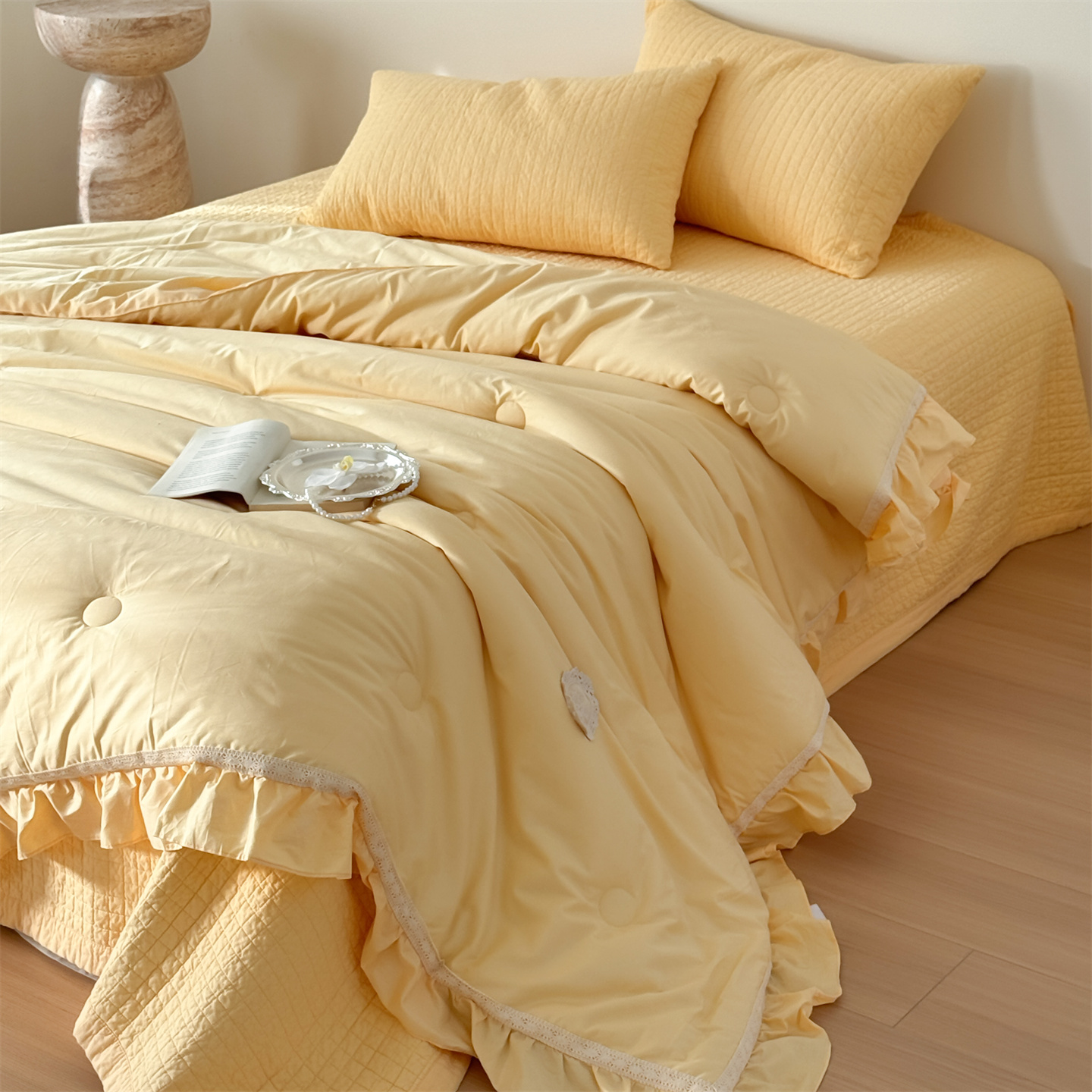 商品名称:床盖工厂店 2026新款双面全棉填充棉花面包格床盖三件套 面包格-米黄