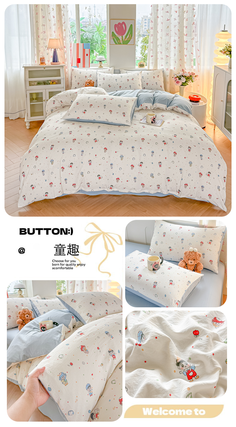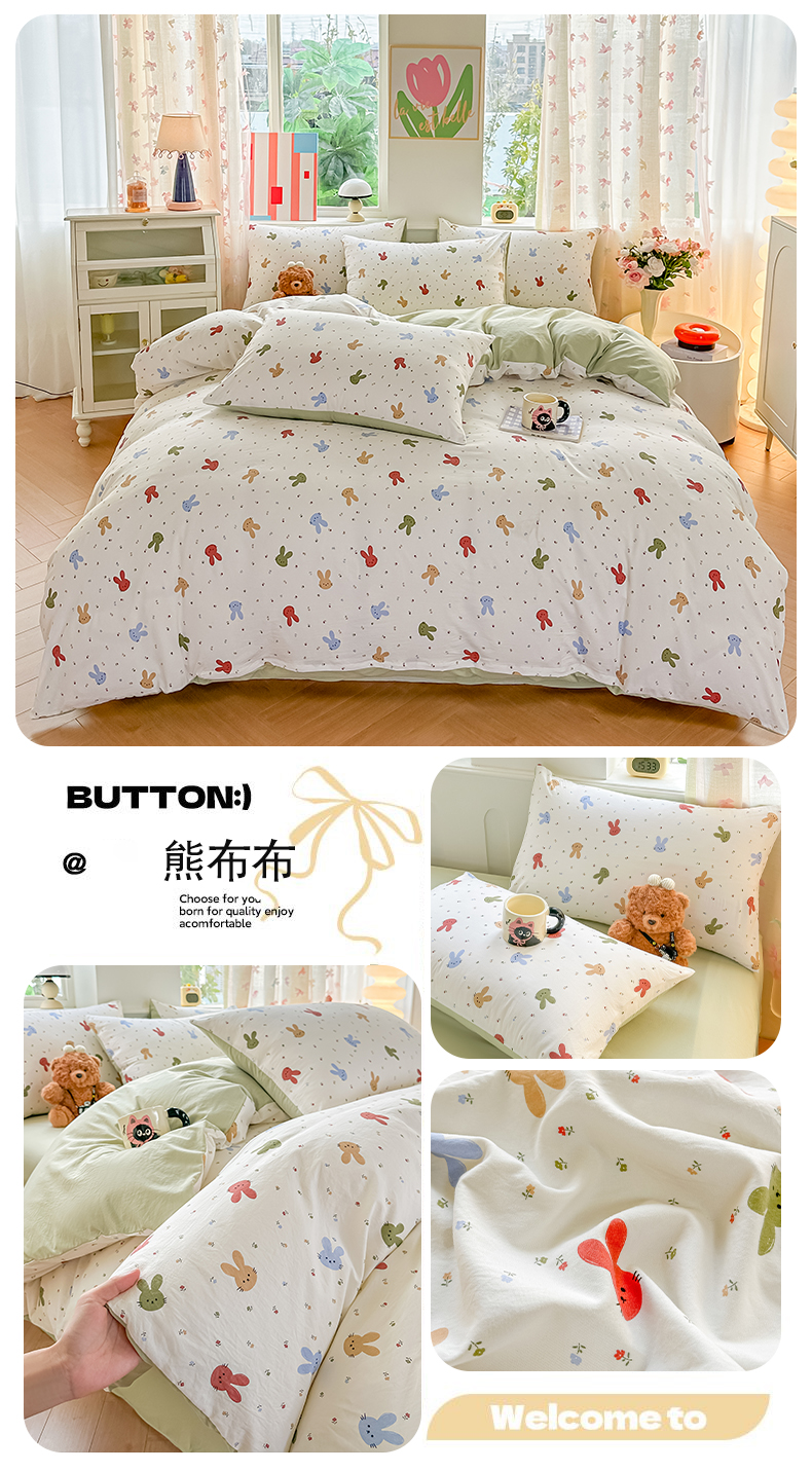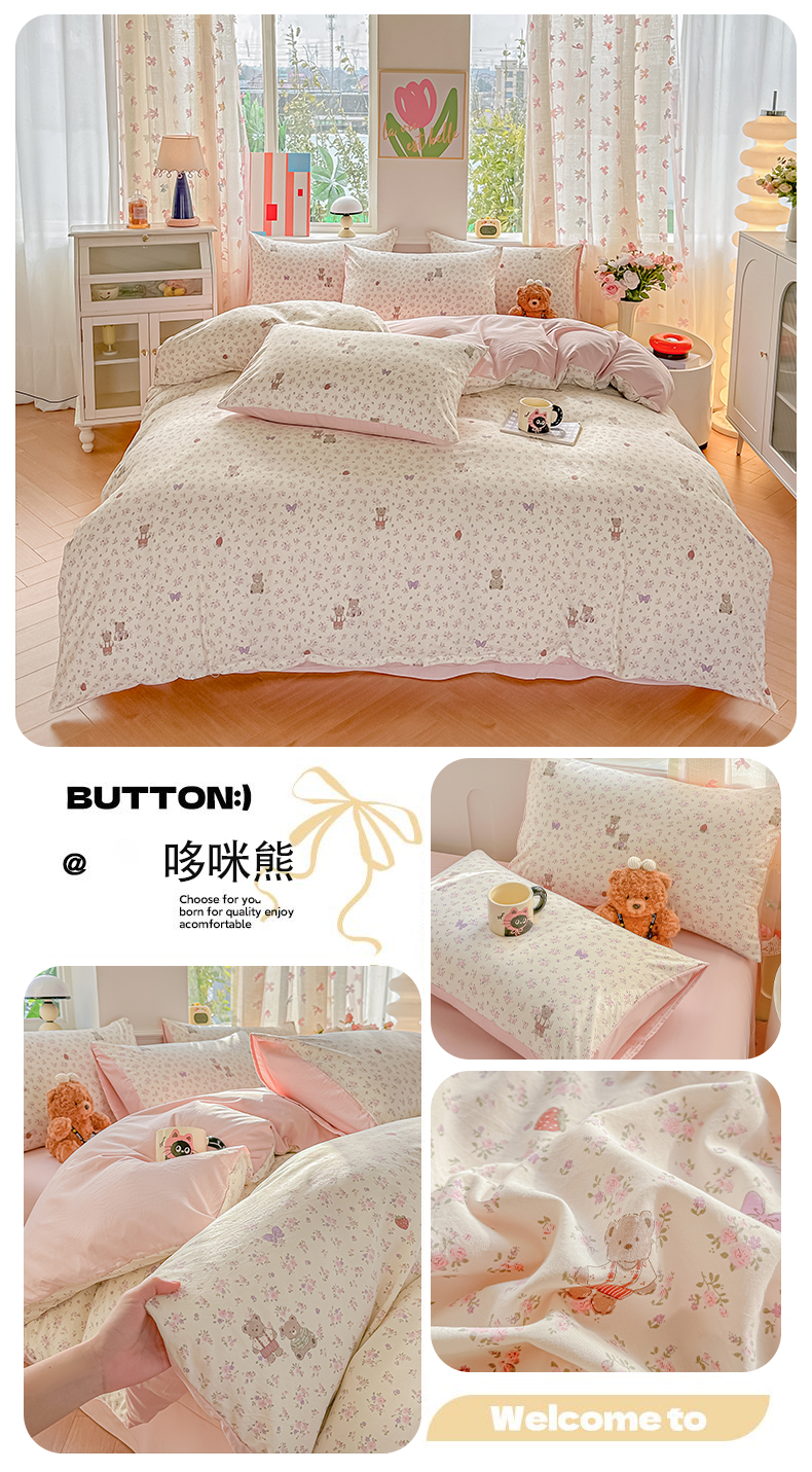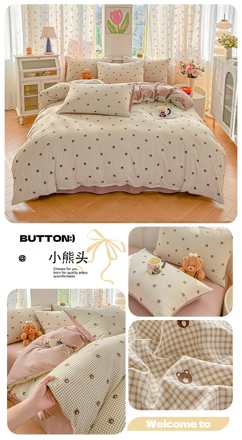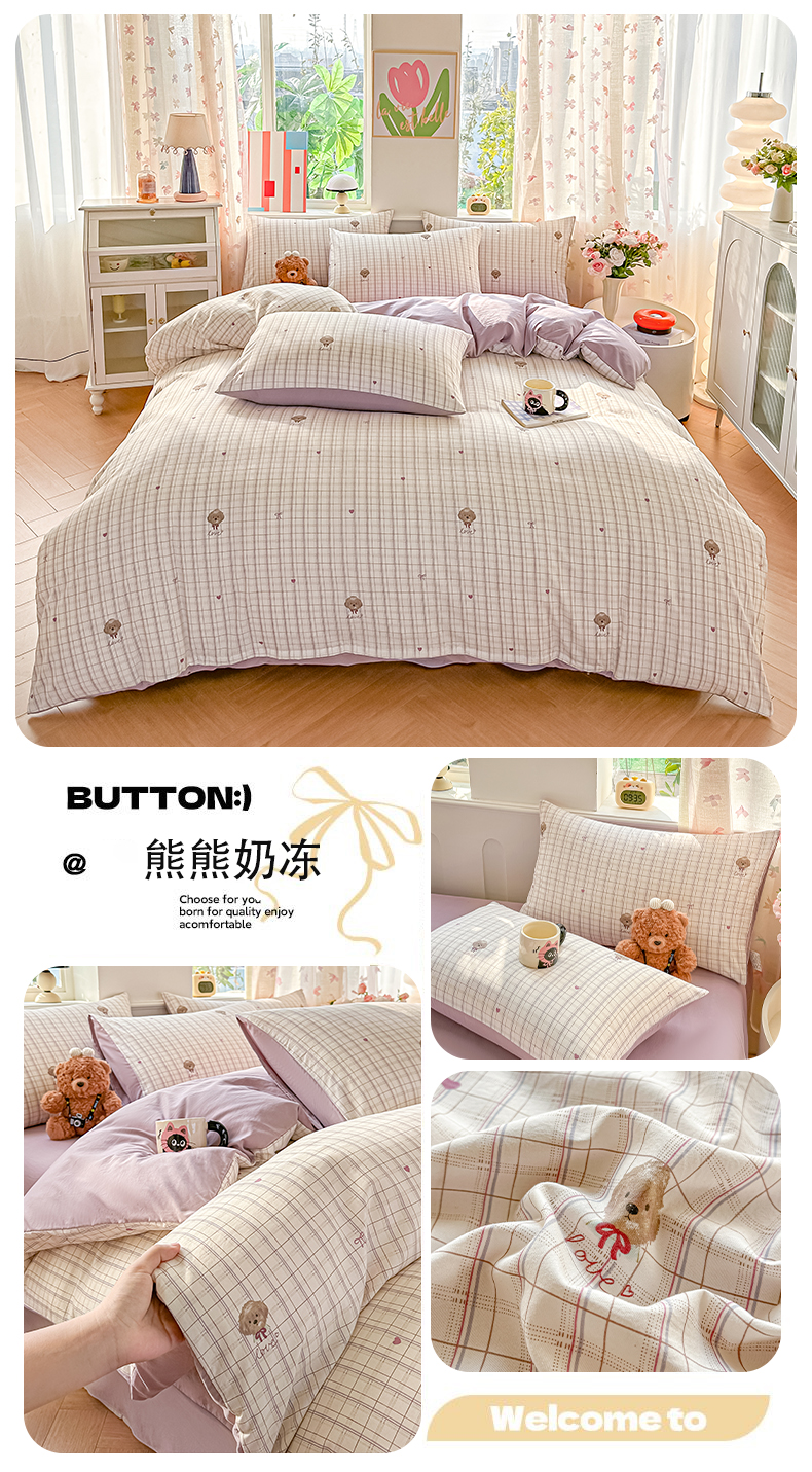 当前位置: 91家纺网 > 商品网购 > 床品套件 > 四件套 > 水洗棉四件套 > 利禾家纺 2026新款春夏古法水洗仿棉云感纱四件套小布袋五件套 熊布布