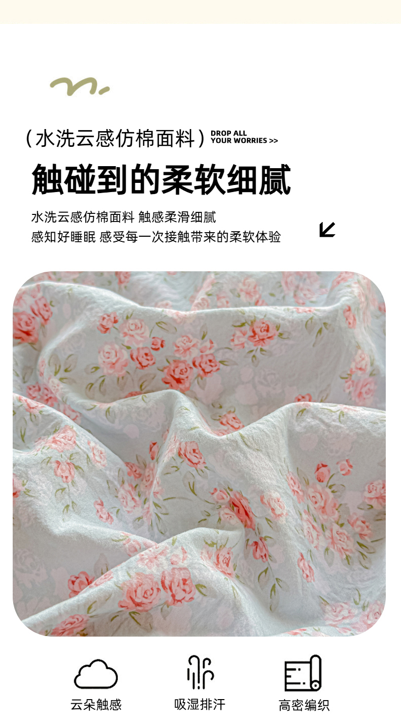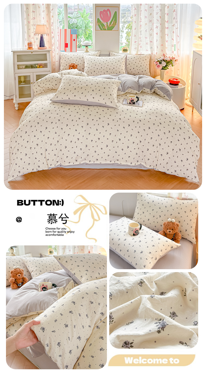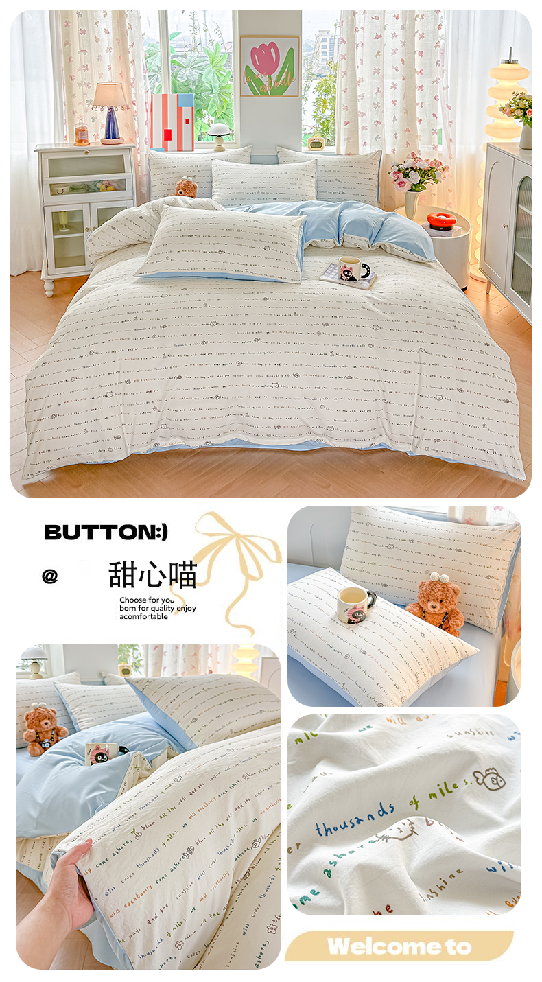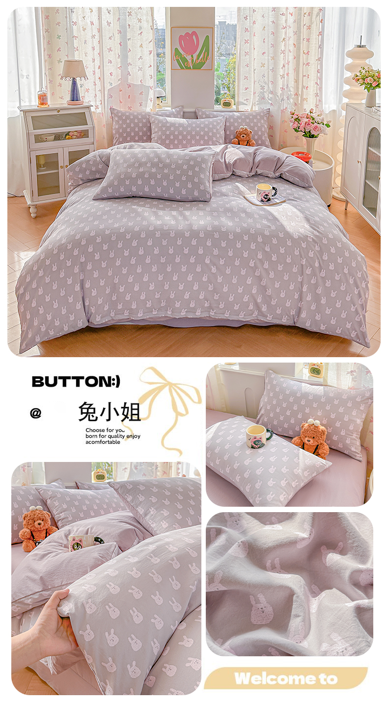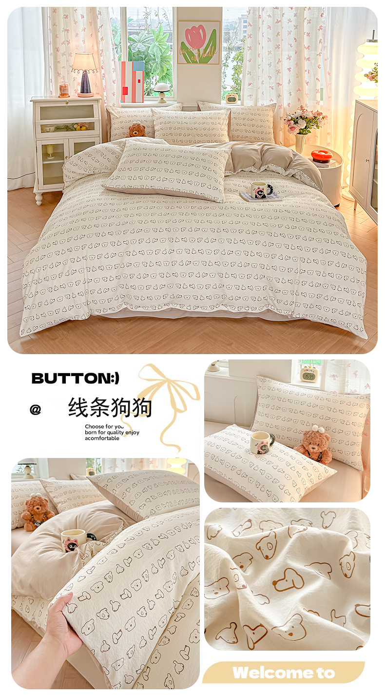 当前位置: 91家纺网 > 商品网购 > 床品套件 > 四件套 > 水洗棉四件套 > 利禾家纺 2026新款春夏古法水洗仿棉云感纱四件套小布袋五件套 熊布布