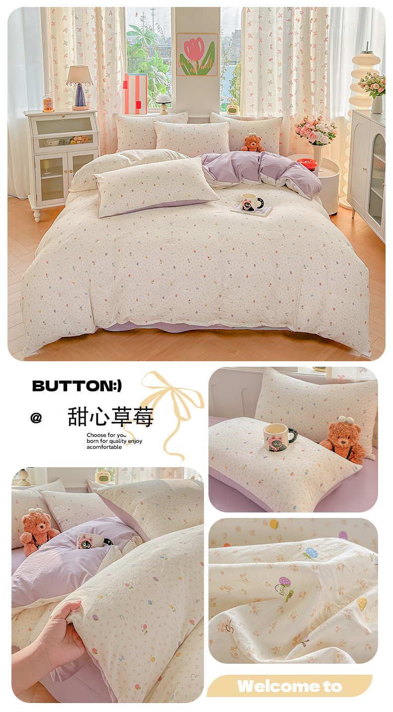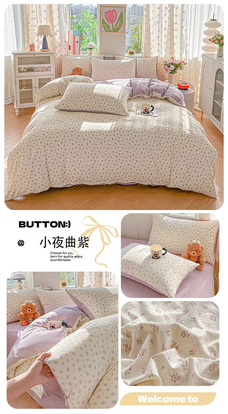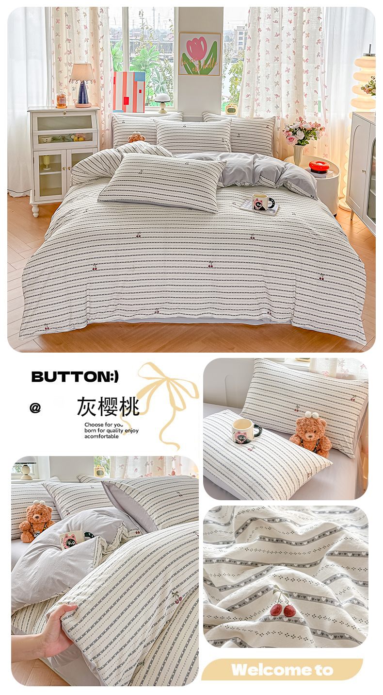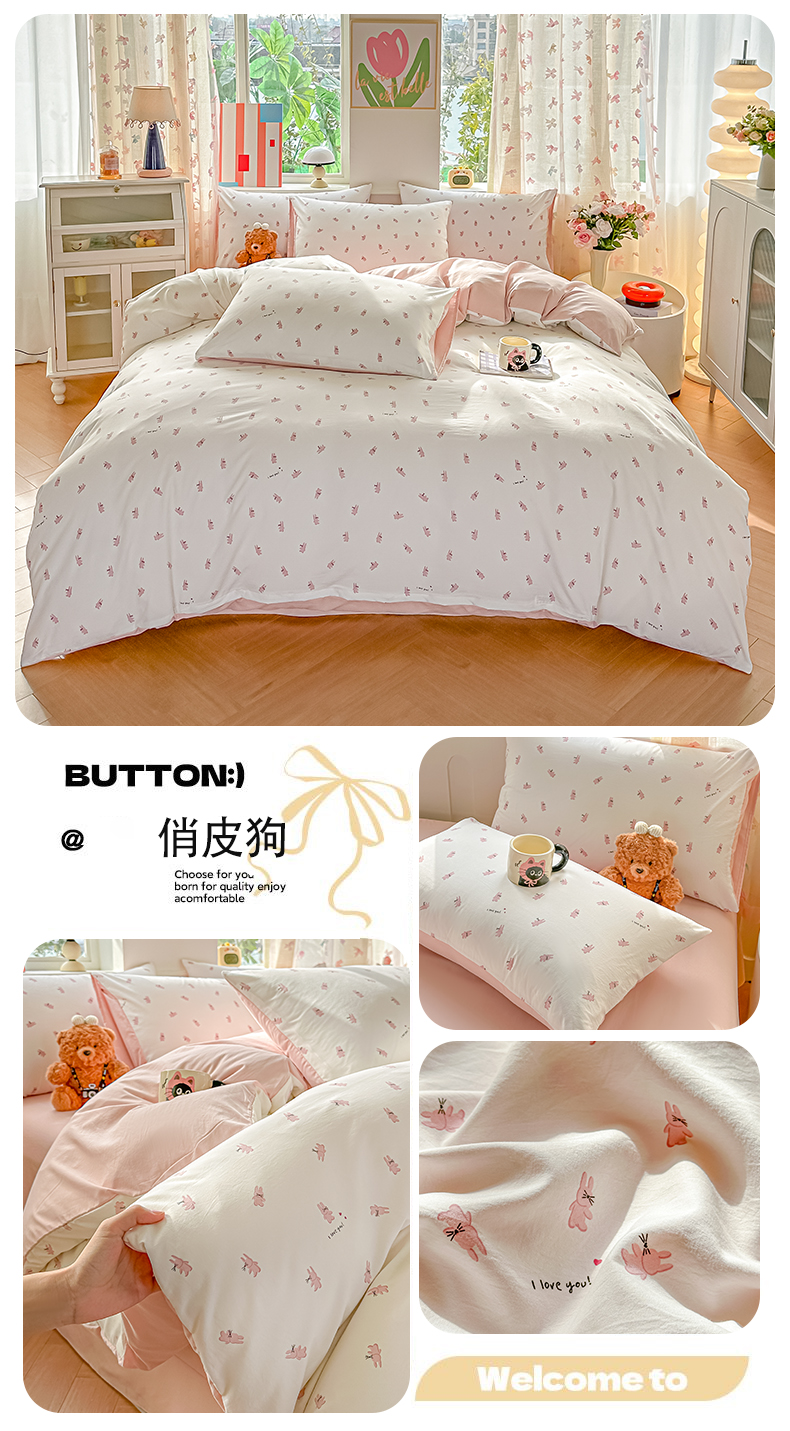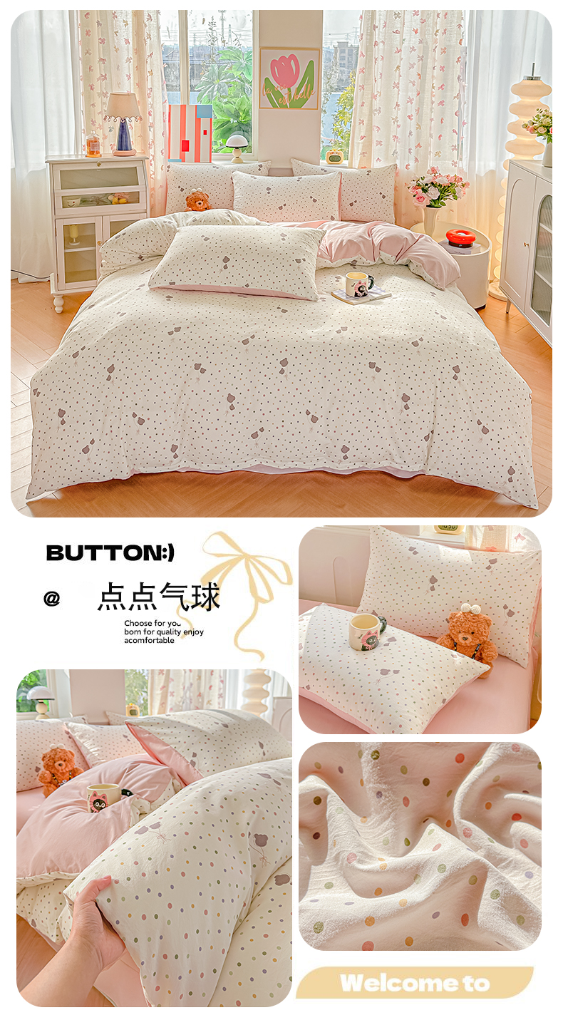 当前位置: 91家纺网 > 商品网购 > 床品套件 > 四件套 > 水洗棉四件套 > 利禾家纺 2026新款春夏古法水洗仿棉云感纱四件套小布袋五件套 熊布布