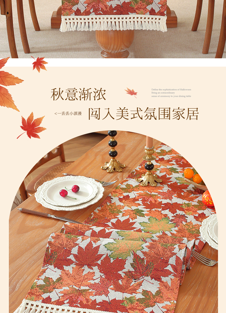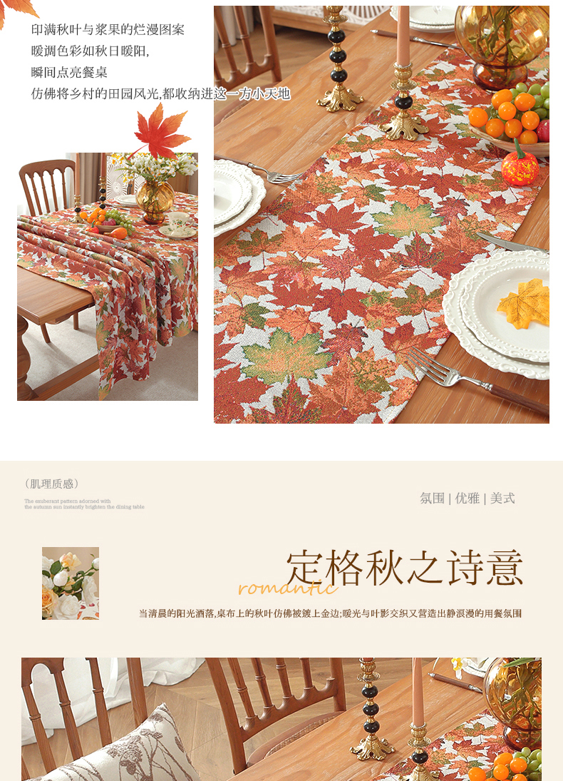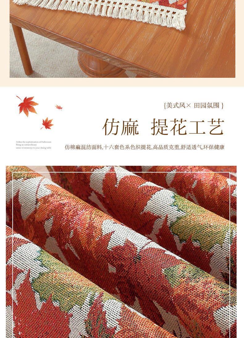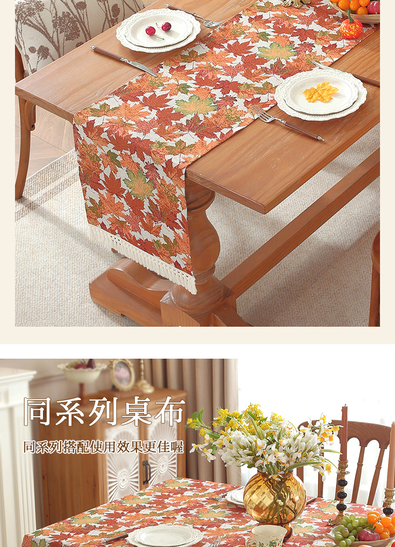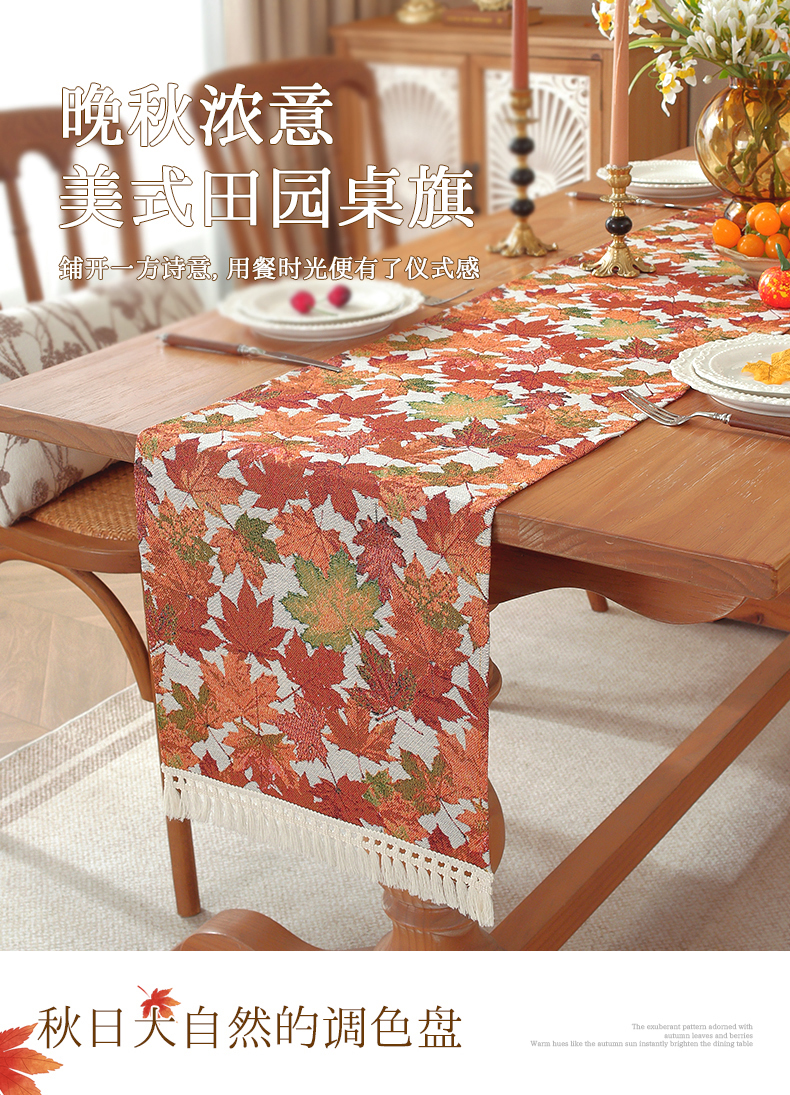 当前位置: 91家纺网 > 商品网购 > 居家布艺 > 餐桌布 > (总)南通大梧纺织 2026新款美式田园枫叶桌旗