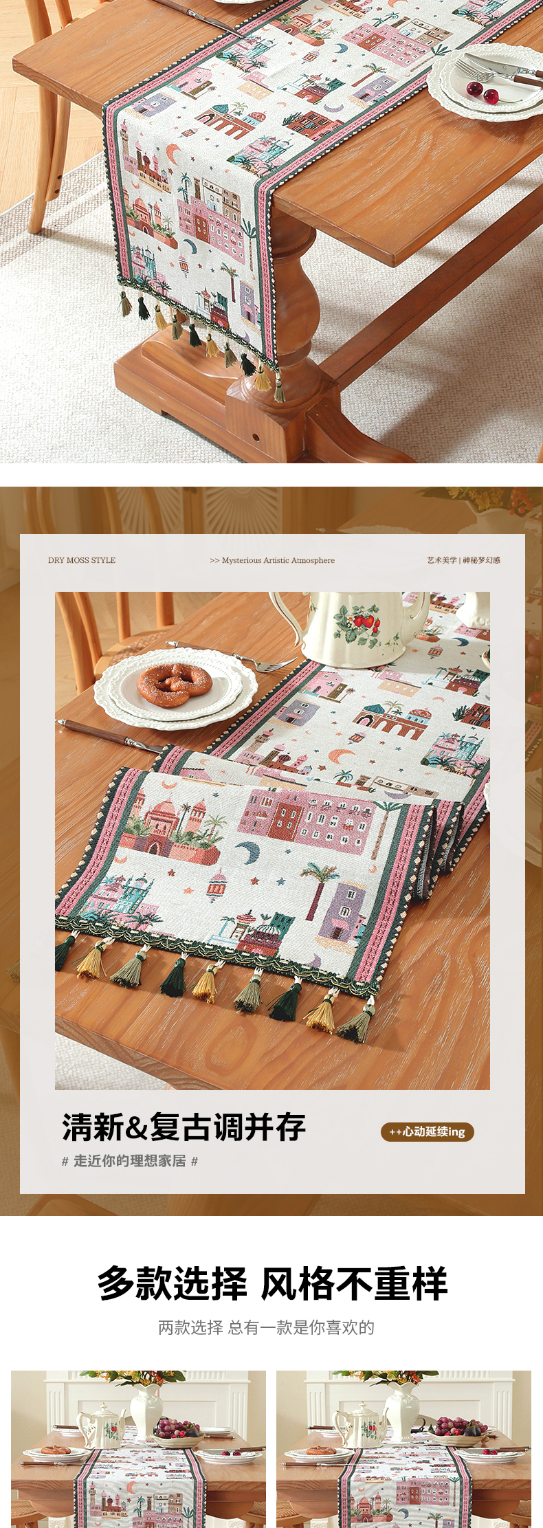 当前位置: 91家纺网 > 商品网购 > 居家布艺 > 餐桌布 > 南通大梧纺织 2026新款中东复古骆驼城堡窗花桌旗 白底城堡星月(绿织穗)