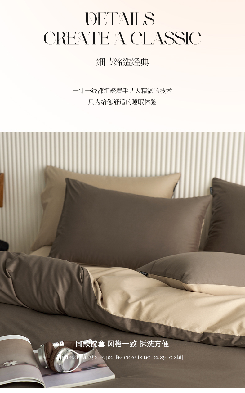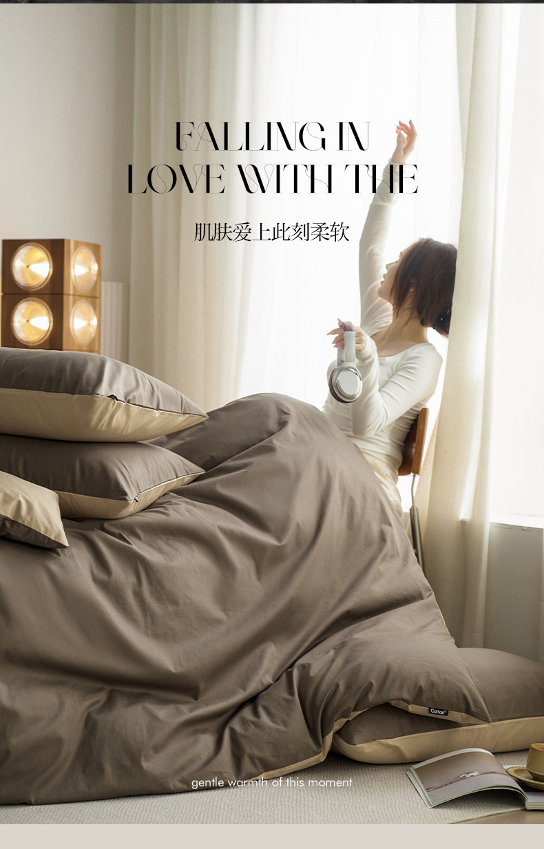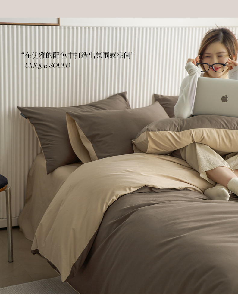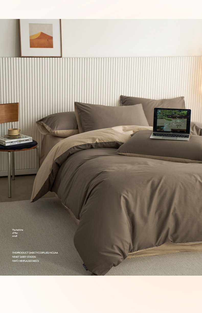 当前位置: 91家纺网 > 商品网购 > 床品套件 > 四件套 > 全棉普通四件套 > 小懒猪 2026新款13372A类双拼纯色全棉纯棉四件套 (提供买家秀) 深咖-香槟