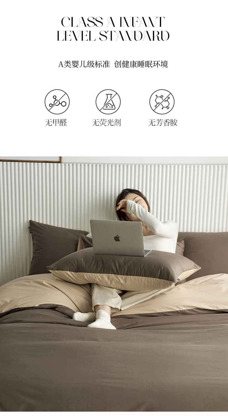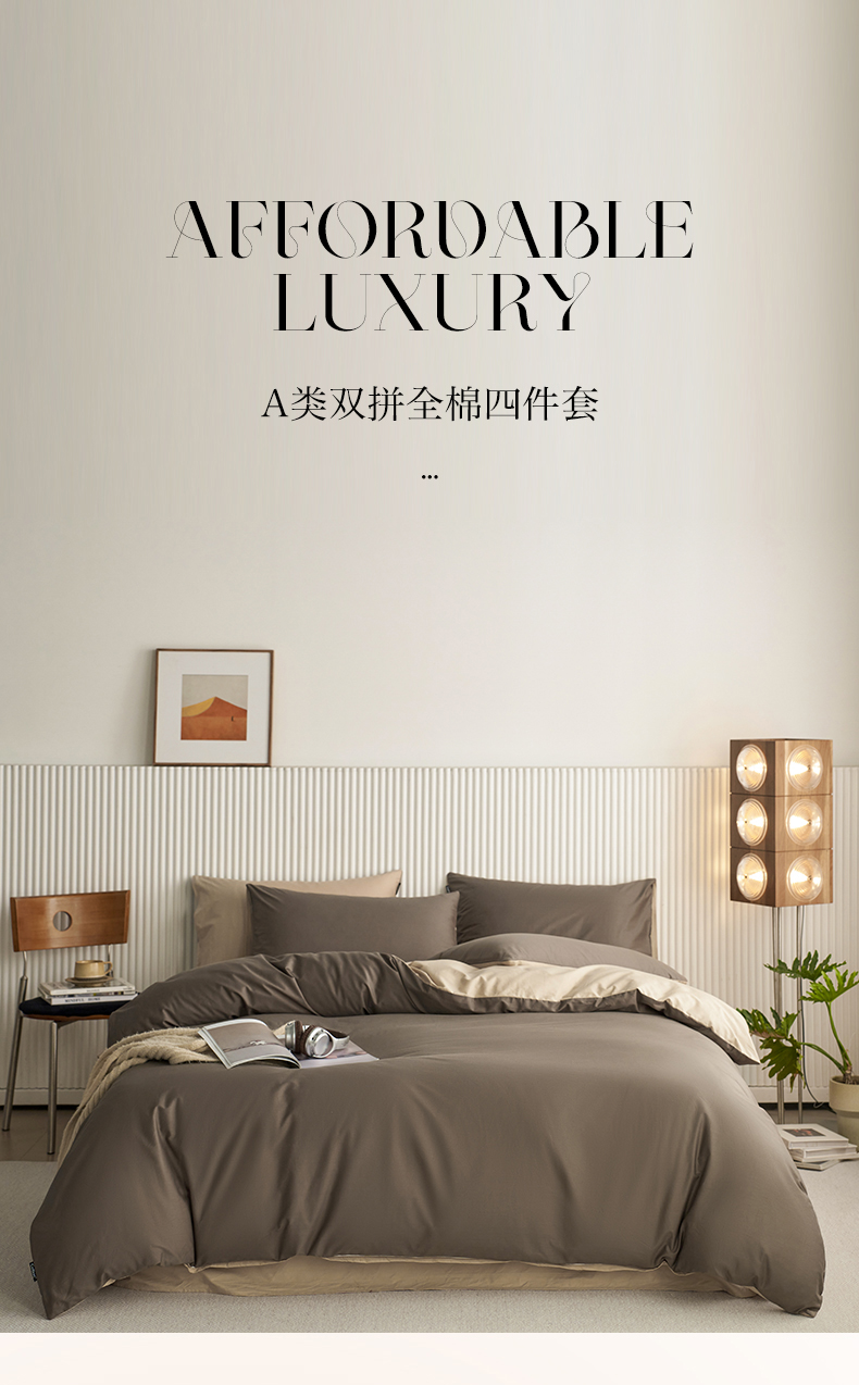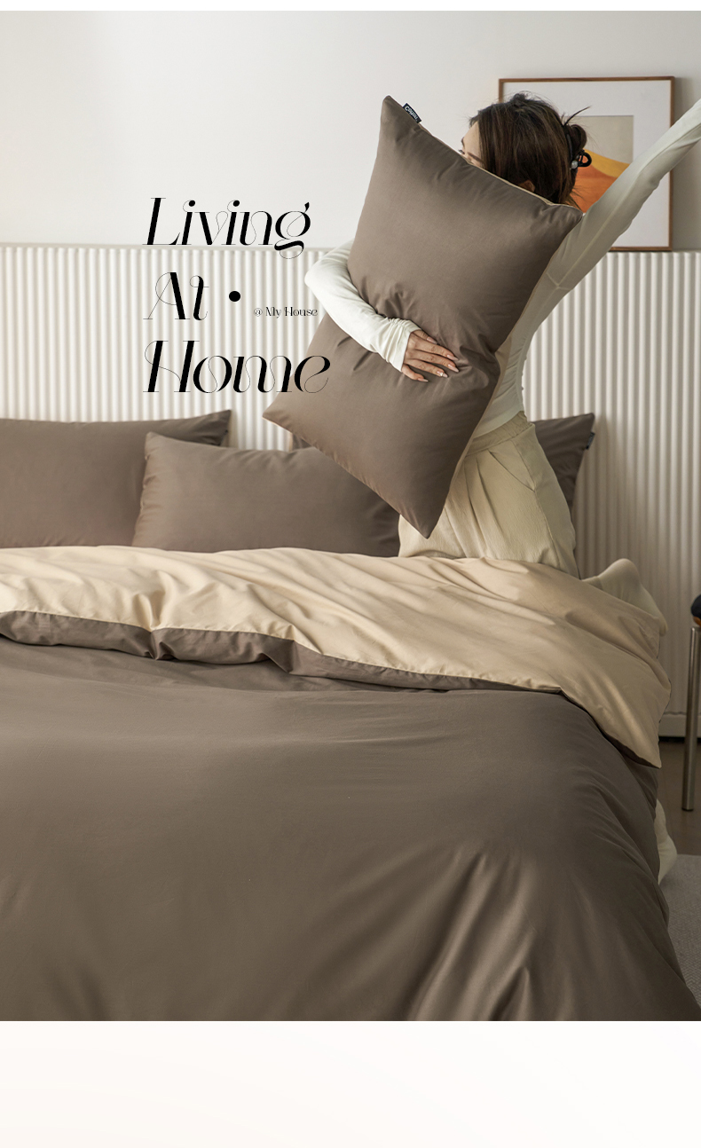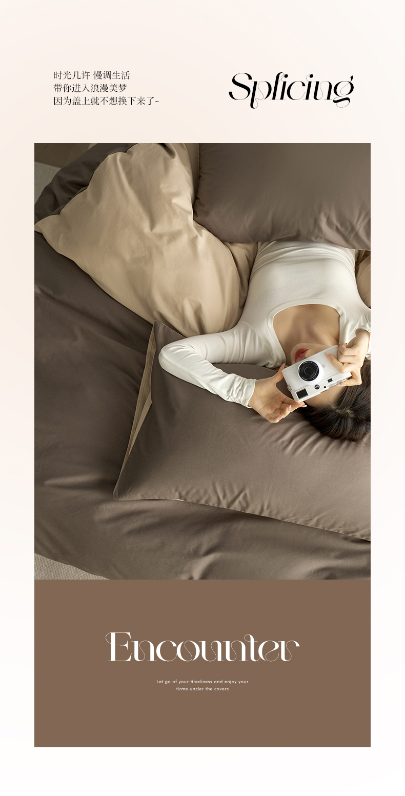 当前位置: 91家纺网 > 商品网购 > 床品套件 > 四件套 > 全棉普通四件套 > 小懒猪 2026新款13372A类双拼纯色全棉纯棉四件套 (提供买家秀) 深咖-香槟