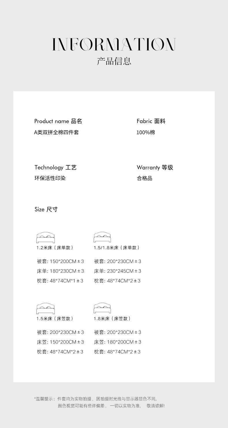 【床笠款】1.8四件套-被套200x230 | ¥120.00 |