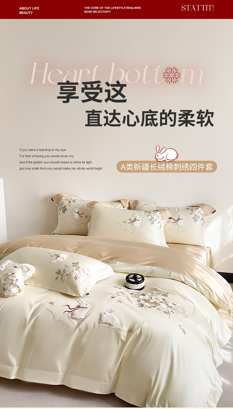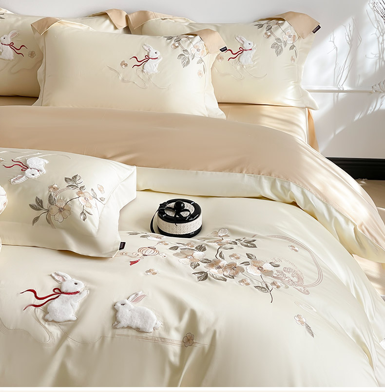 (总) 2026新年锦鲤A类贡缎长绒棉四件套纯棉重工刺绣被套床单床笠喜庆床上用品-柏丽兔,柏丽兔-棕,柏丽兔-粉,柏丽兔-金,柏丽兔-紫