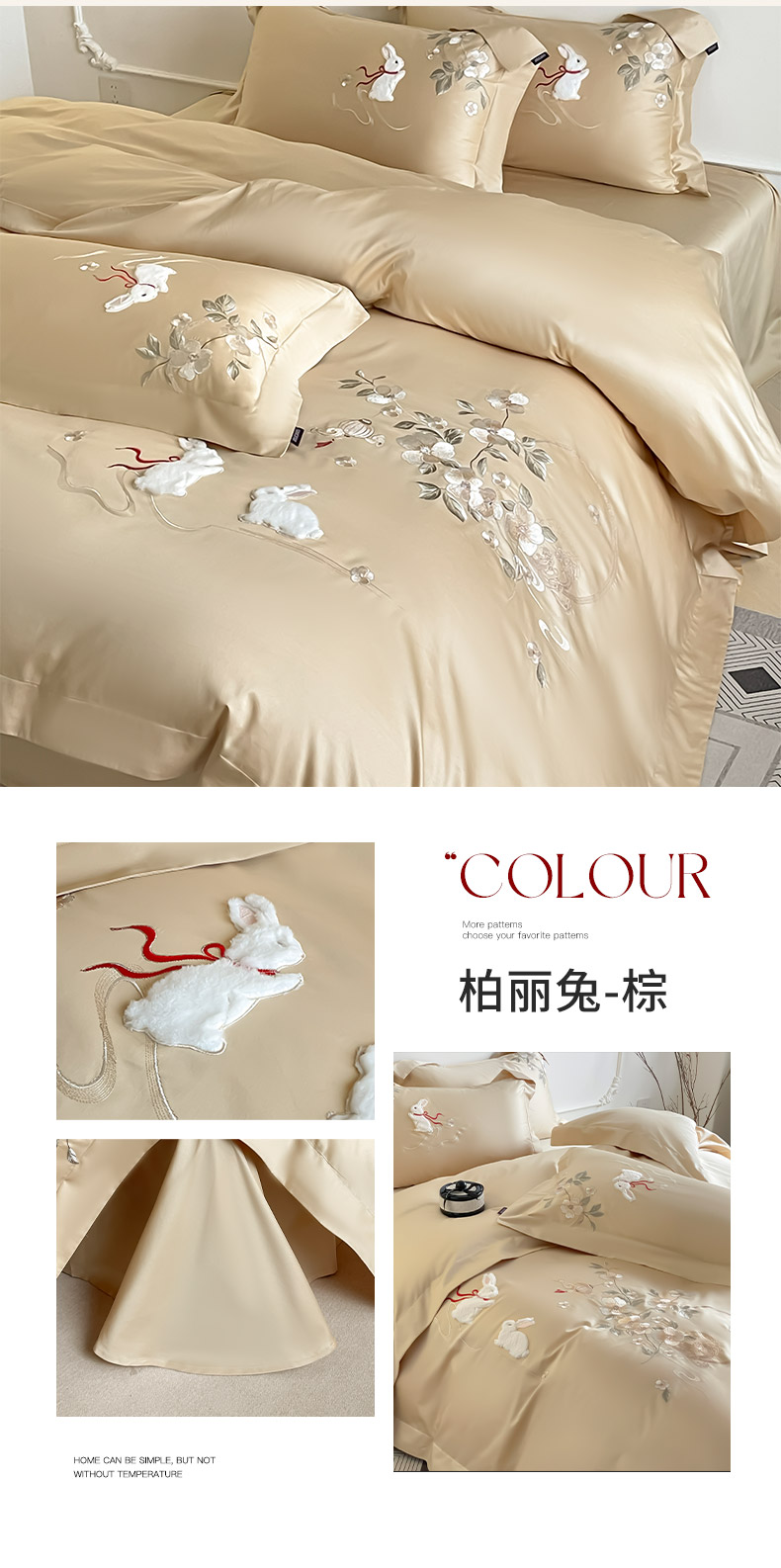 (总) 2026新年锦鲤A类贡缎长绒棉四件套纯棉重工刺绣被套床单床笠喜庆床上用品,柏丽兔-粉,柏丽兔-金,柏丽兔-紫,柏丽兔-棕