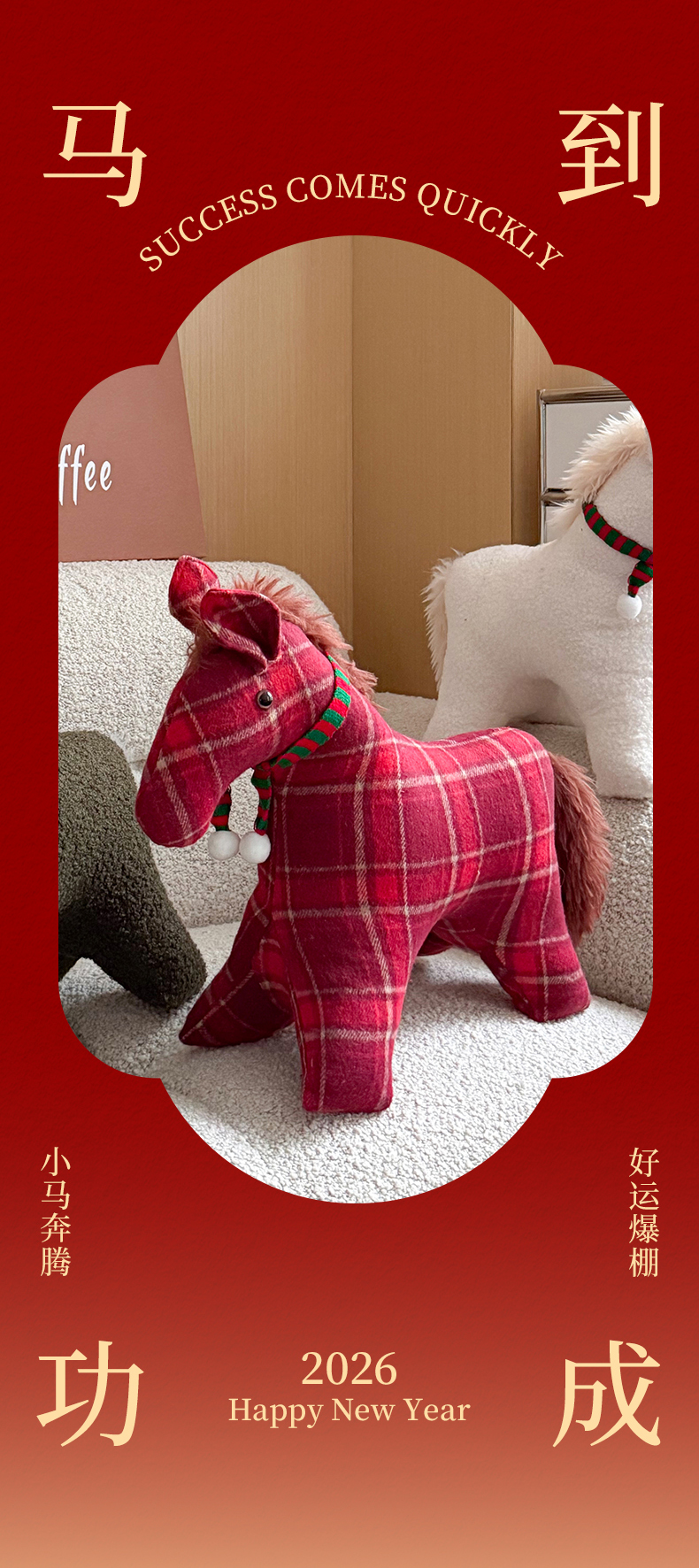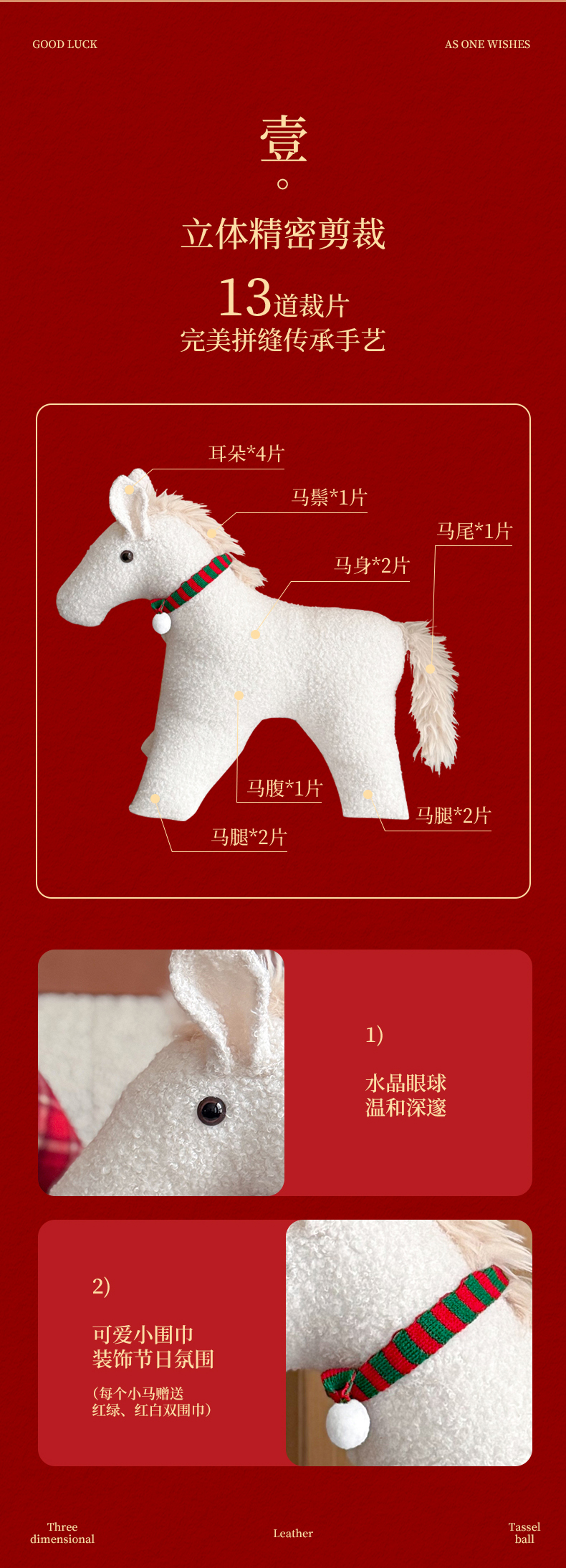 (总)美茉家居 2025新款小马立体玩偶抱枕,白马,红格子马,灰格子马,绿马,棕马