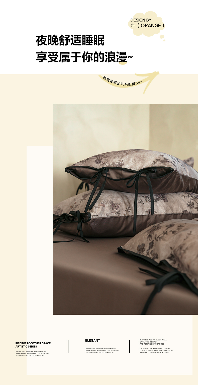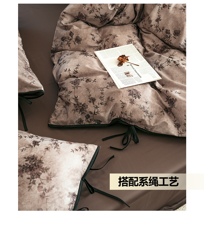 商品名称:简纯主义 2026新款50s全棉数码印花四件套-南风知我意 南风知我意-咖