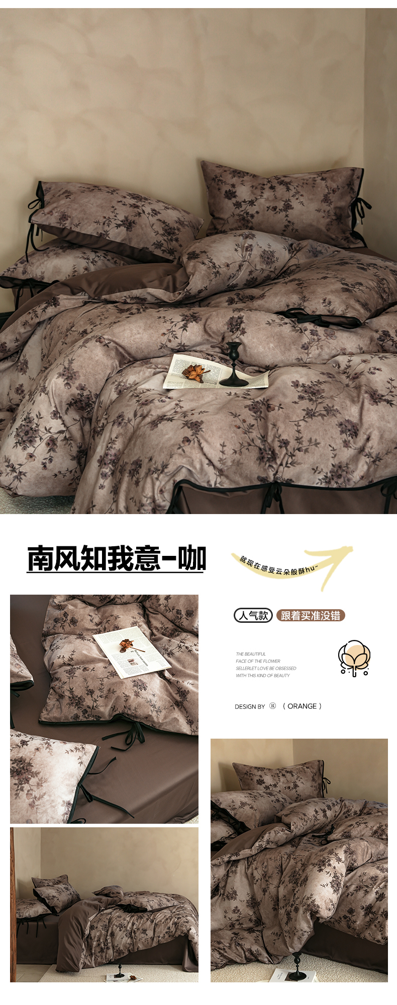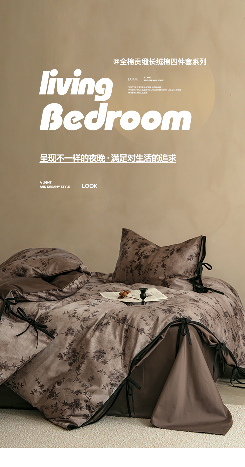 简纯主义 2026新款50s全棉数码印花四件套-南风知我意 南风知我意-咖