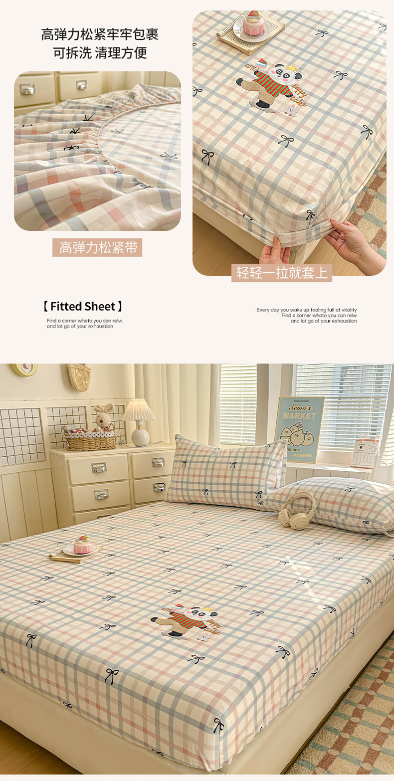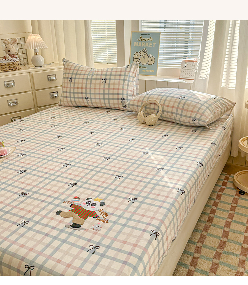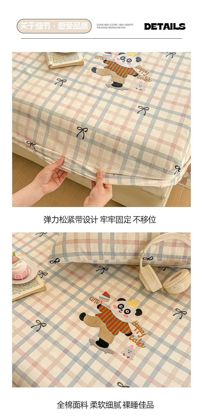 易辰美 2026新款13372全棉纯棉印花卡通床笠单品床笠单件单床笠 红蓝熊猫