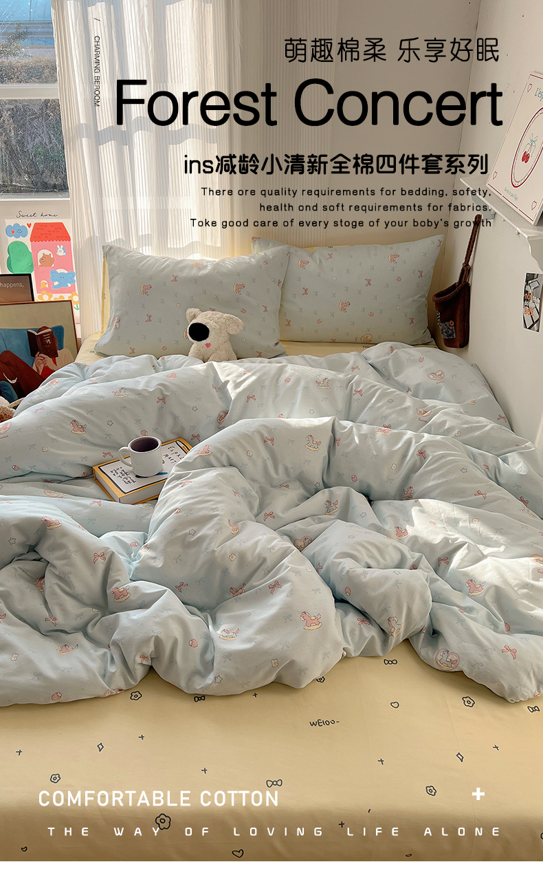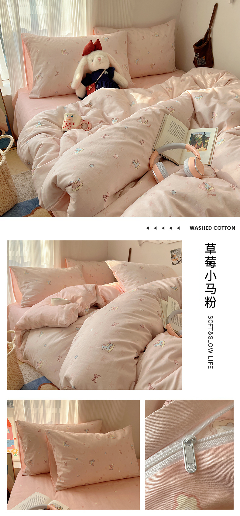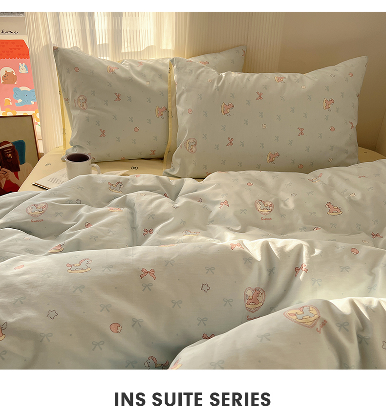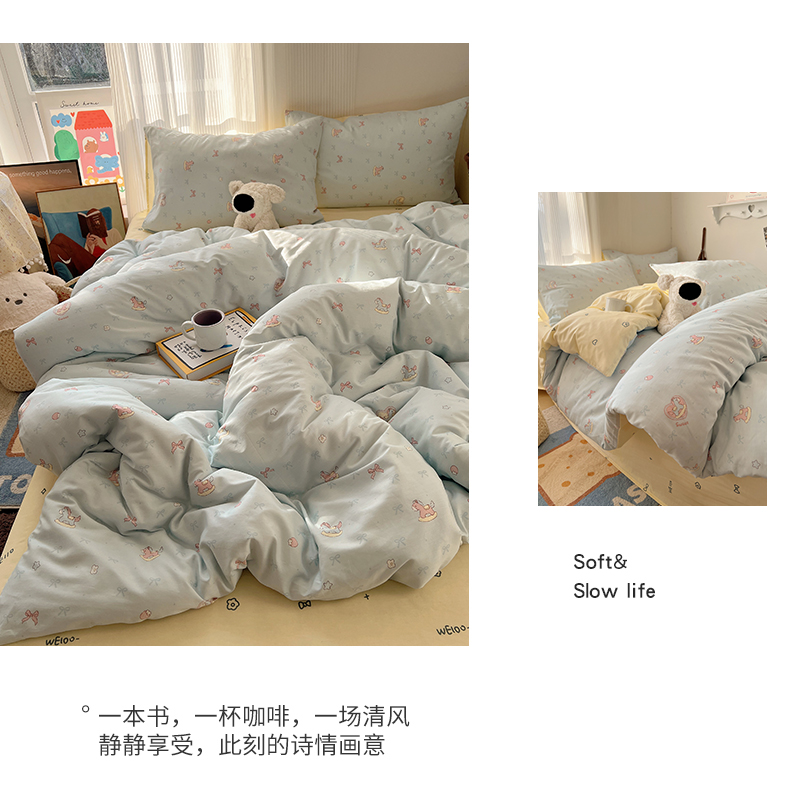 当前位置: 91家纺网 > 商品网购 > 床品套件 > 四件套 > 全棉普通四件套 > XIWEN-希文家纺 2026春夏新款40支全棉13372卡通四件套 草莓小马-兰