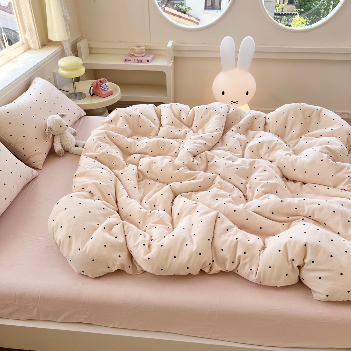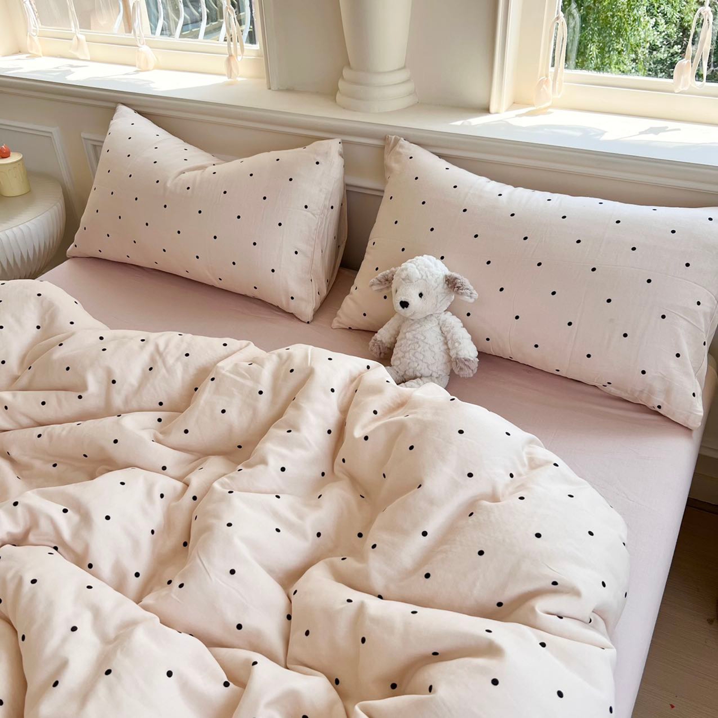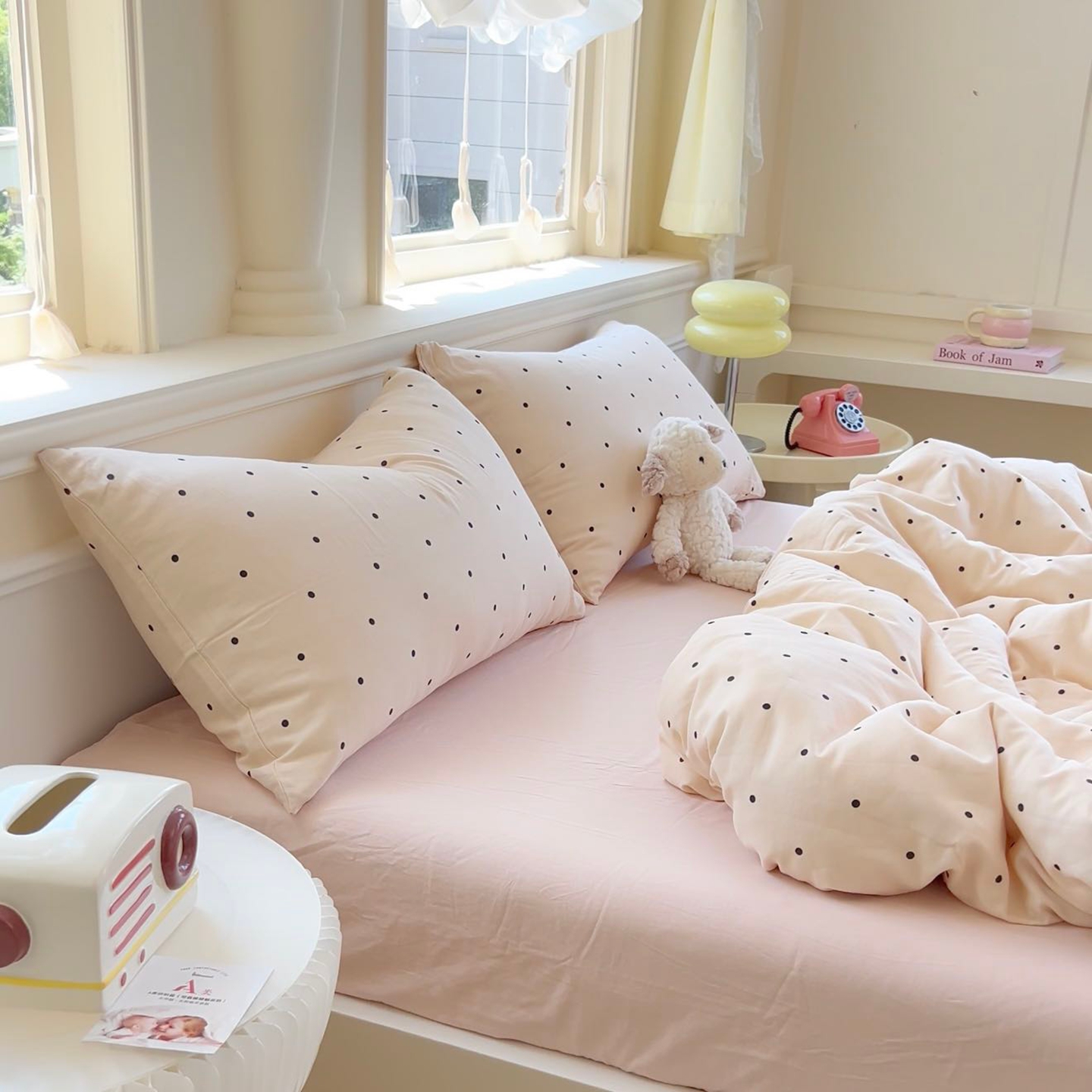 (总)一比一家纺 2026春季新款高克重加厚色织提花系列四件套,北欧童话,波点,复古小花,花清梦,岚影,铃兰,玛奇朵,漫秋,萌萌狗,萌萌兔,摩洛哥,蘑菇兔-粉,蘑菇兔-咖,暖栗南瓜,少女心,甜心咖,童梦园,汪星人,小樱桃,摇摇马,野蔷薇,樱桃狗,紫薇,组合图仅供展示不可下单