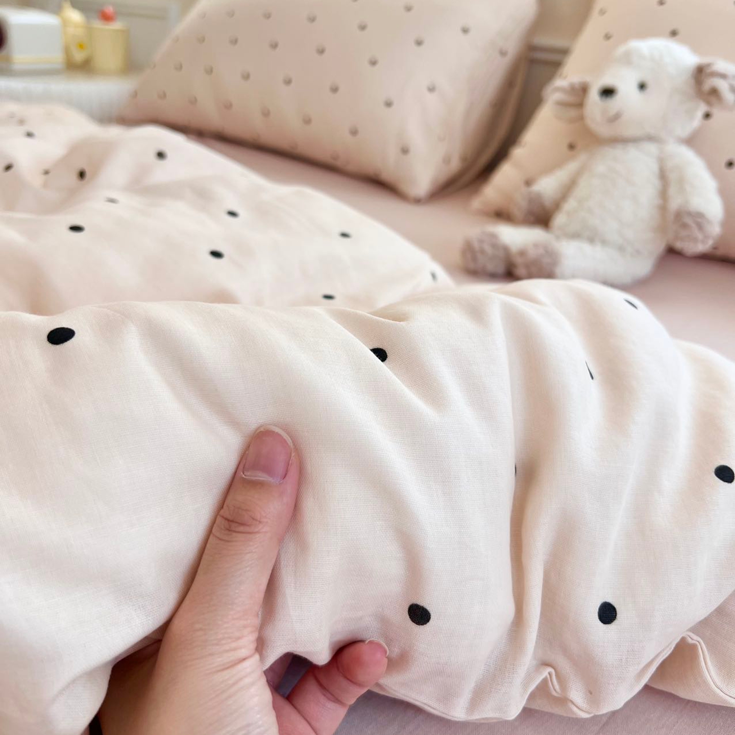 一比一家纺 2026新款全棉双层纱四件套 粉啵啵