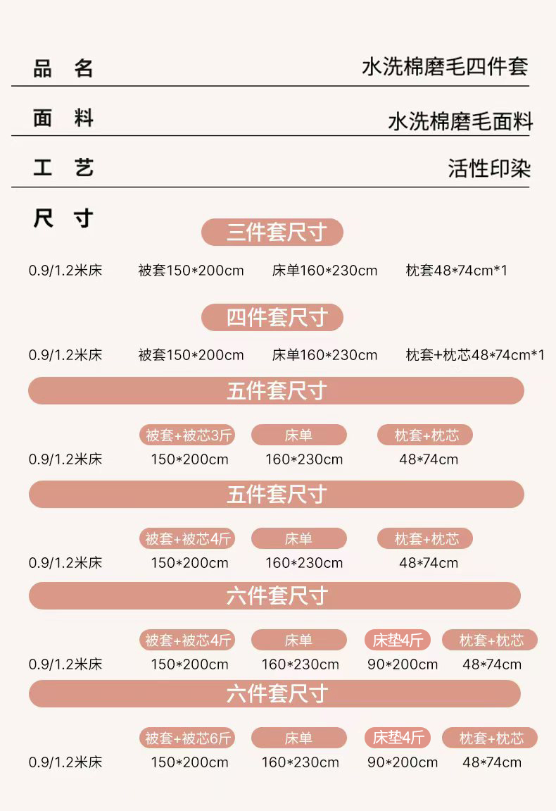 六件套【棉花被芯4斤+垫芯4斤+枕芯三件套】 | ¥87.00 |