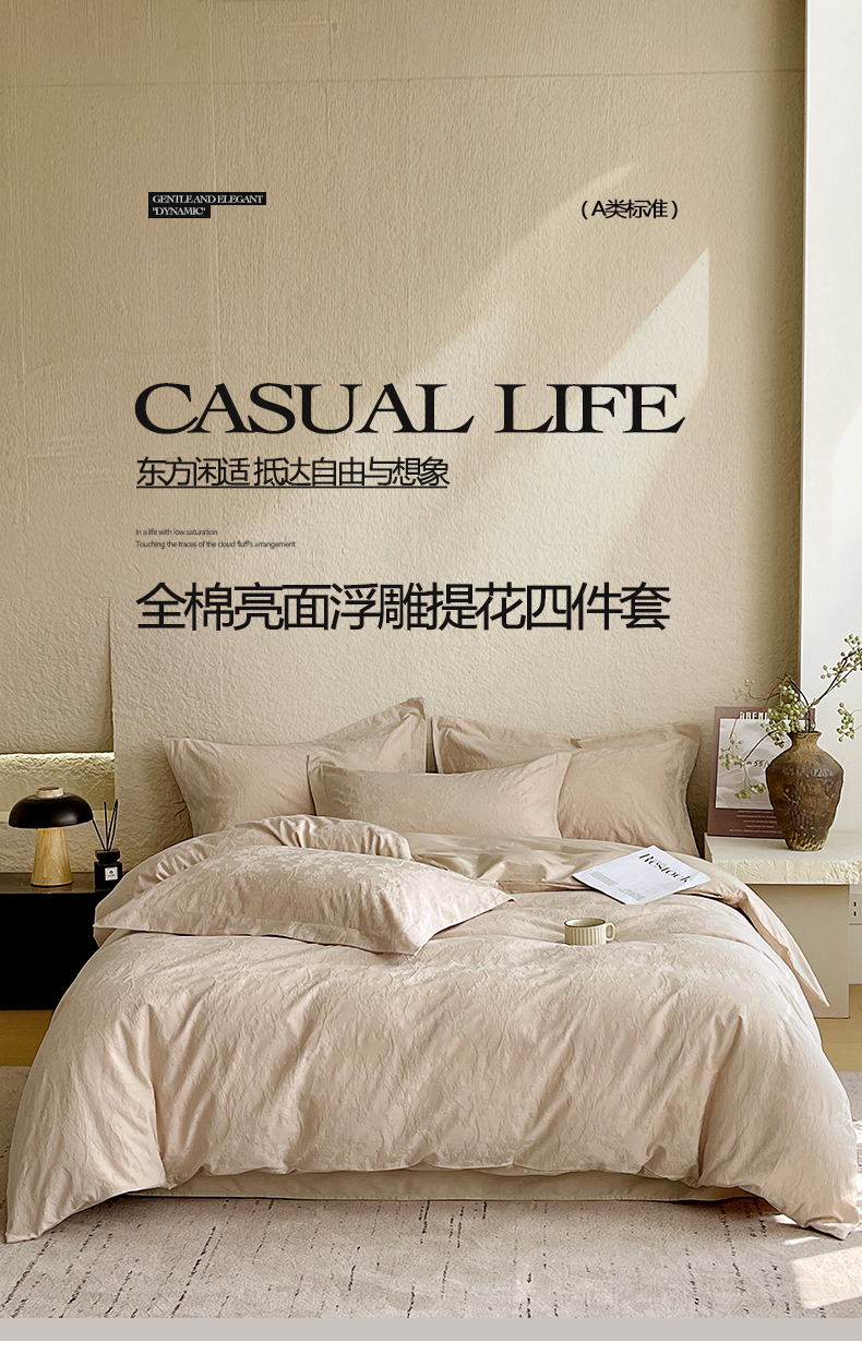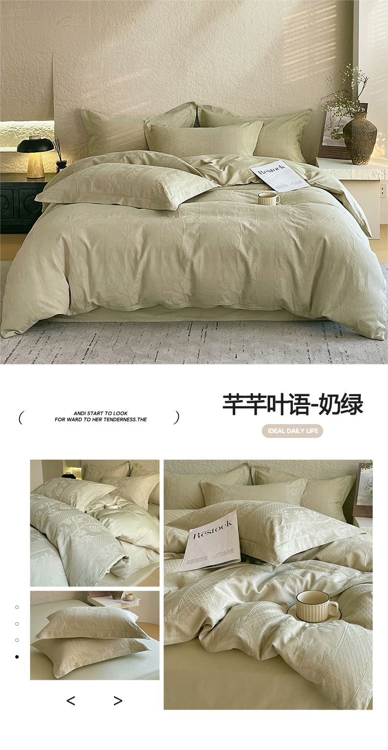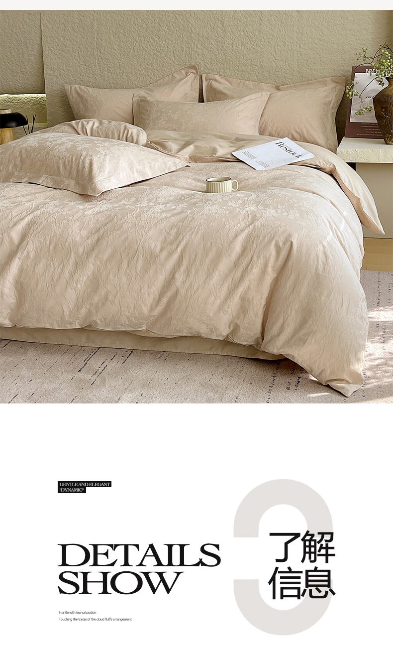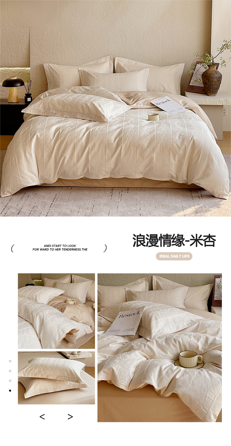 当前位置: 91家纺网 > 商品网购 > 床品套件 > 四件套 > 全棉普通四件套 > 帅露家纺 2026新款A类全棉纯棉亮面浮雕提花四件套 梦幻花园-米杏
