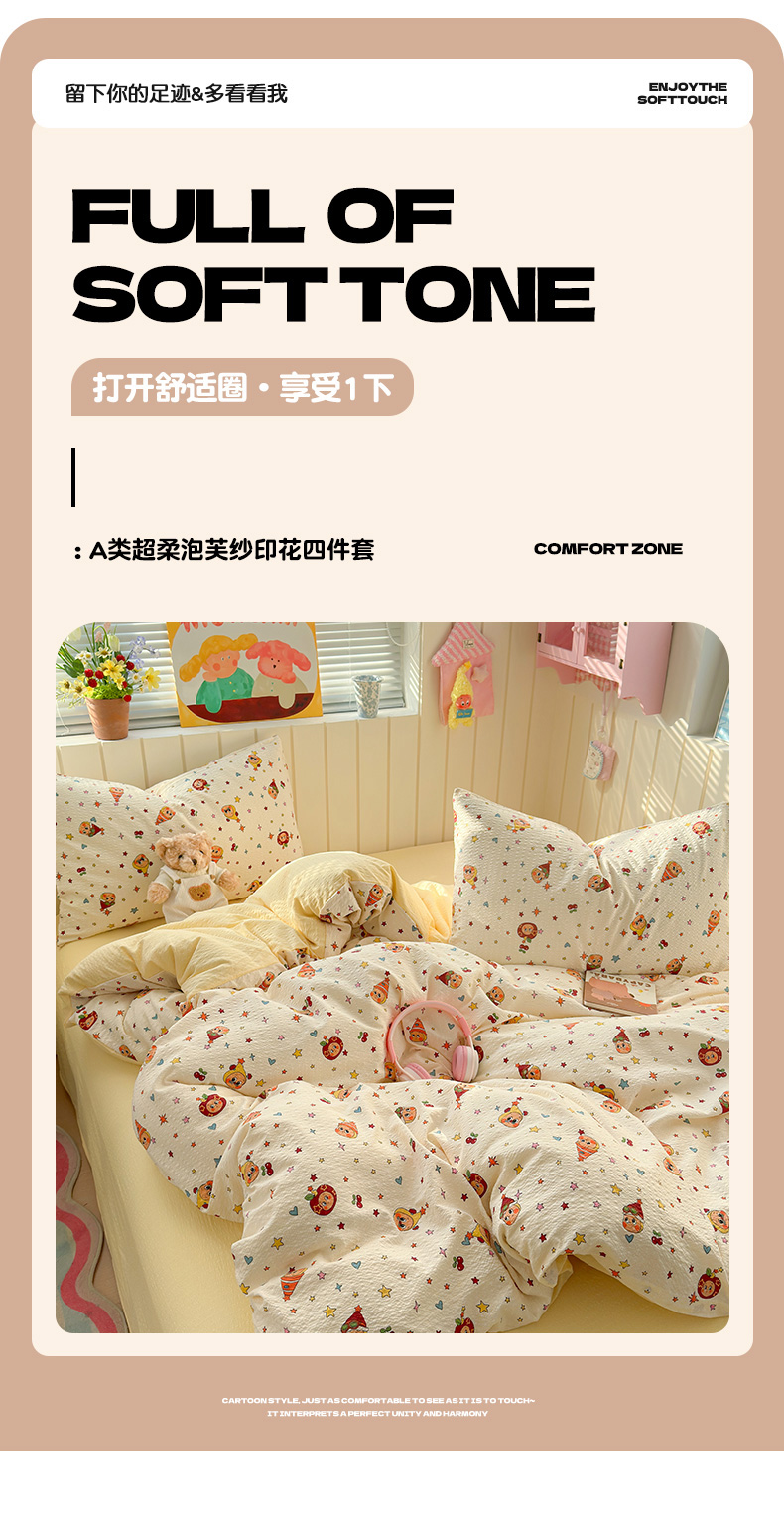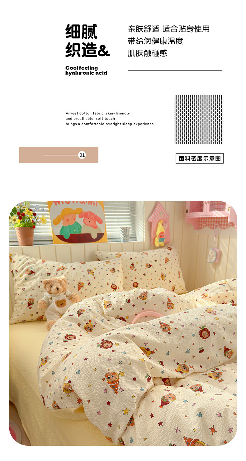 当前位置: 91家纺网 > 商品网购 > 床品套件 > 四件套 > 化纤普通四件套 > 奈颜 2026新款A类泡芙纱印花四件套学生宿舍三件套-卡通印花系列 高帽星星