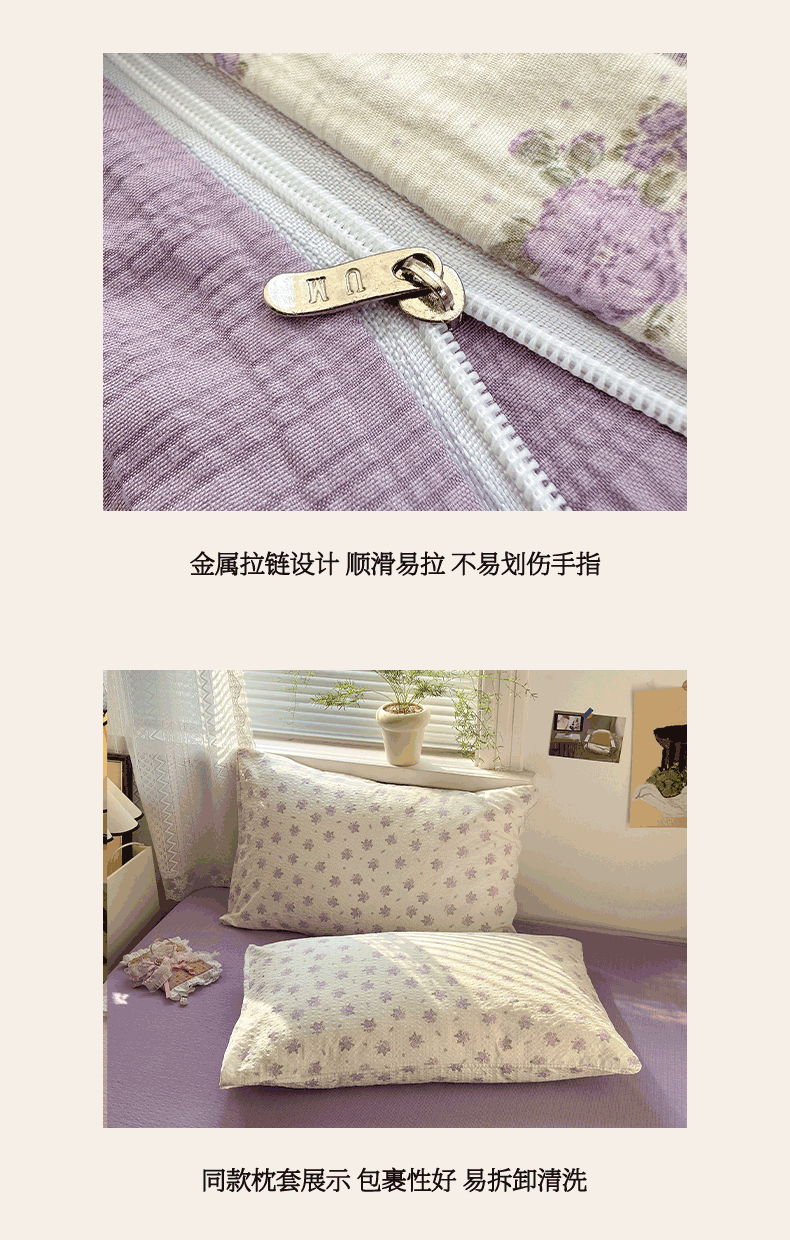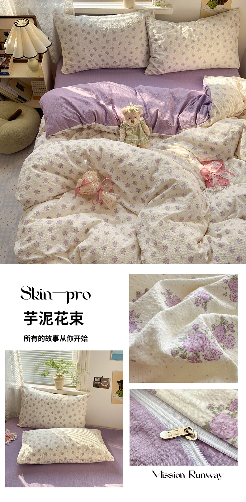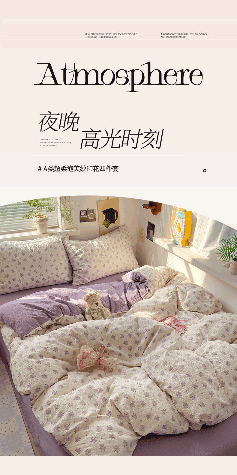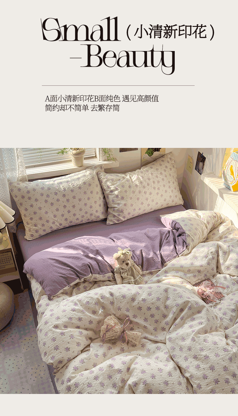 当前位置: 91家纺网 > 商品网购 > 床品套件 > 四件套 > 化纤普通四件套 > 奈颜 2026新款A类泡芙纱小碎花四件套学生宿舍三件套 芋泥花束