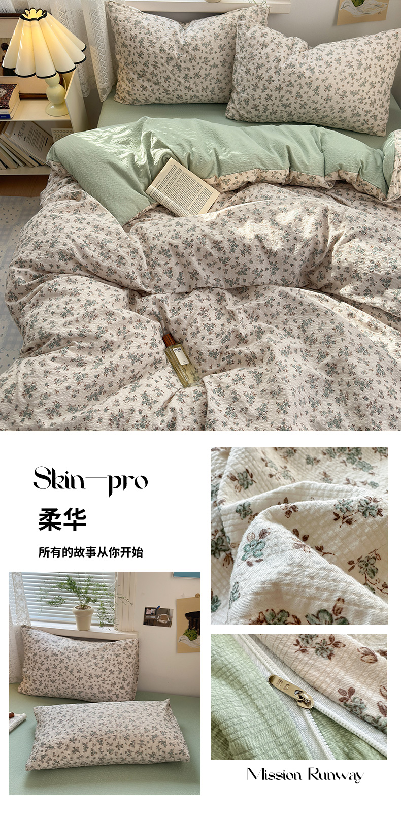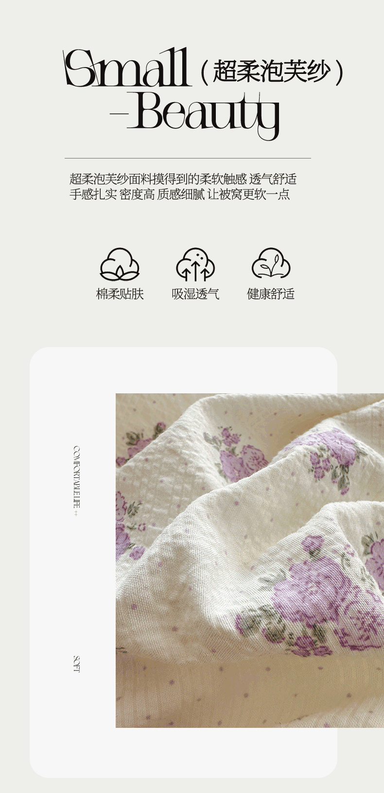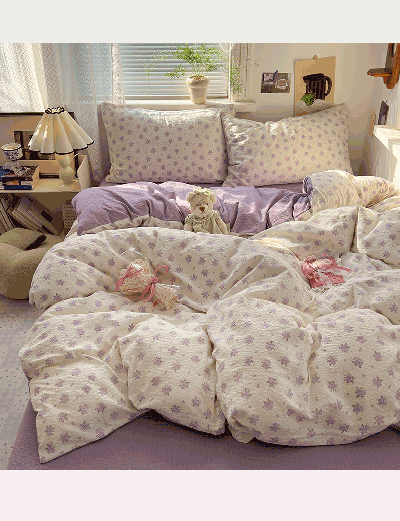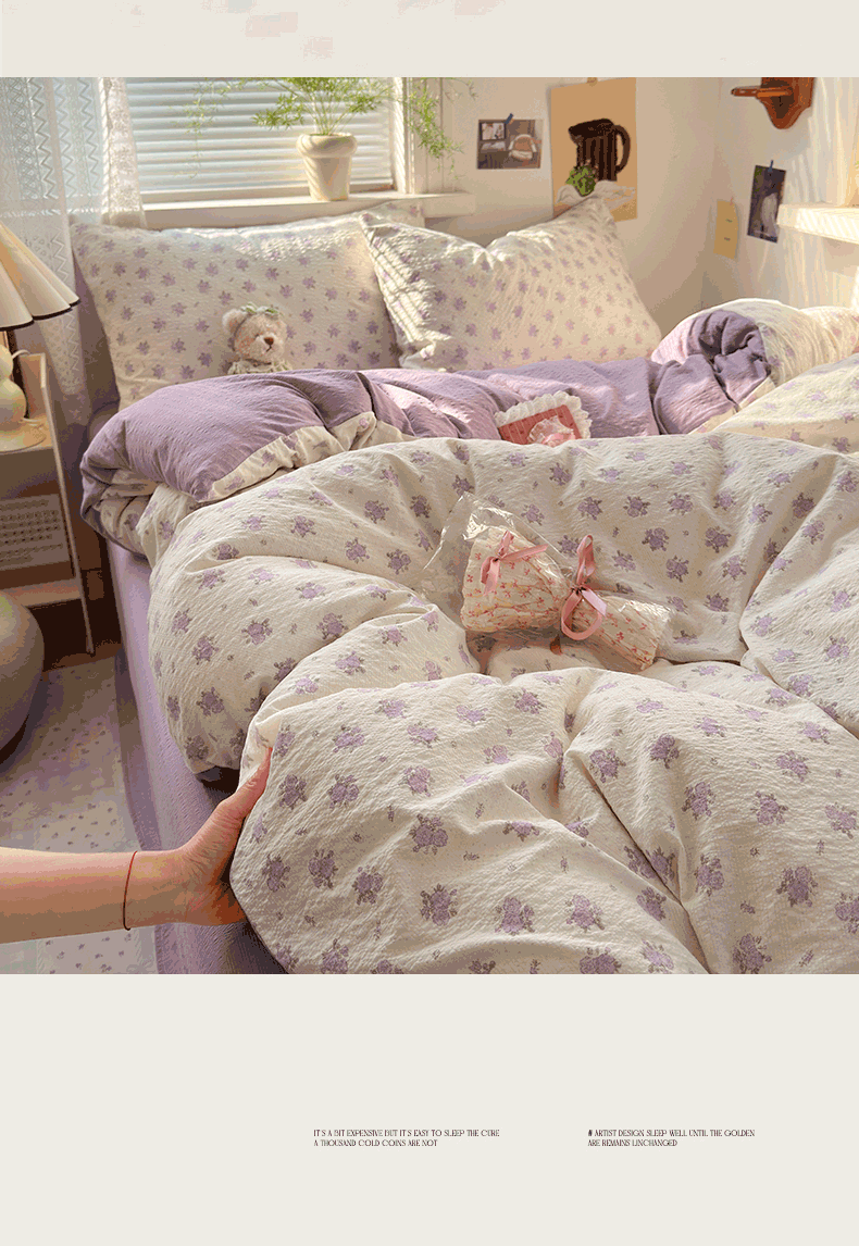 当前位置: 91家纺网 > 商品网购 > 床品套件 > 四件套 > 化纤普通四件套 > 奈颜 2026新款A类泡芙纱小碎花四件套学生宿舍三件套 芋泥花束