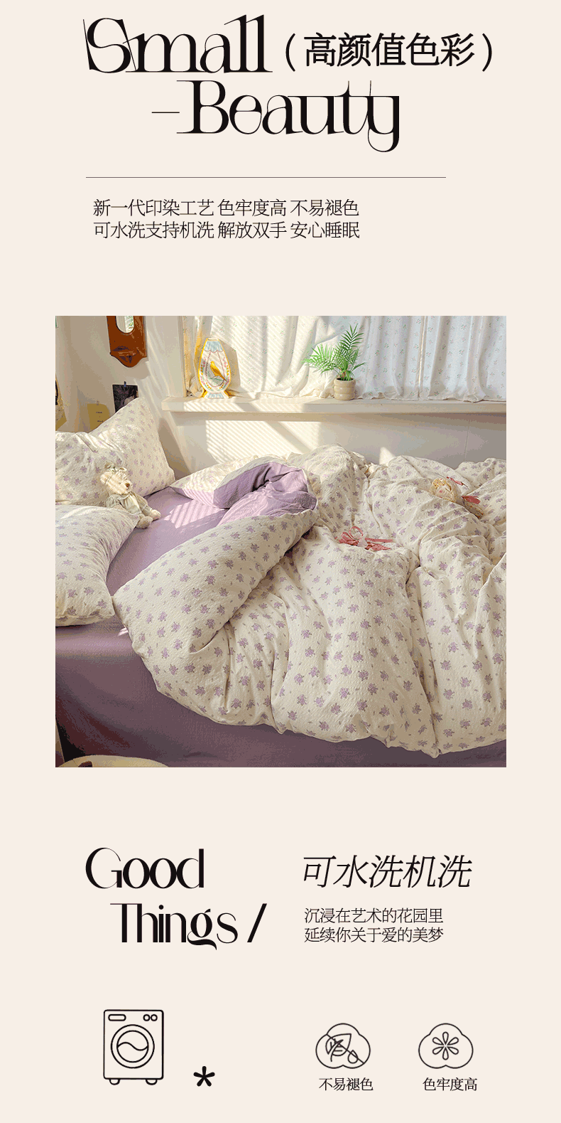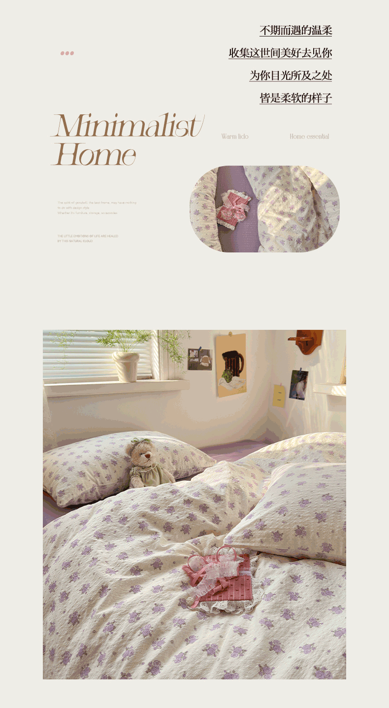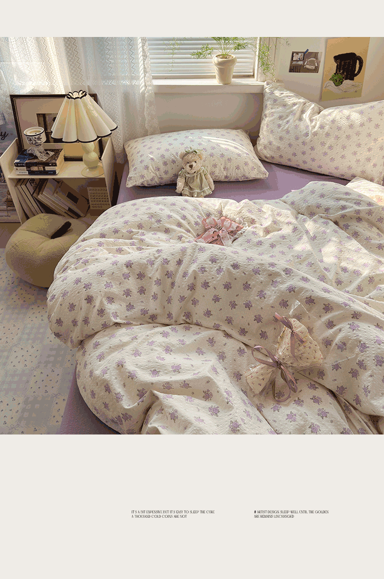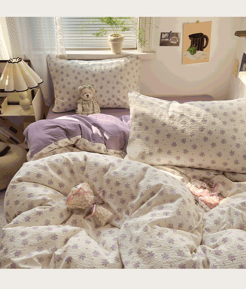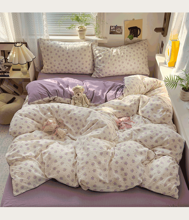 当前位置: 91家纺网 > 商品网购 > 床品套件 > 四件套 > 化纤普通四件套 > 奈颜 2026新款A类泡芙纱小碎花四件套学生宿舍三件套 芋泥花束